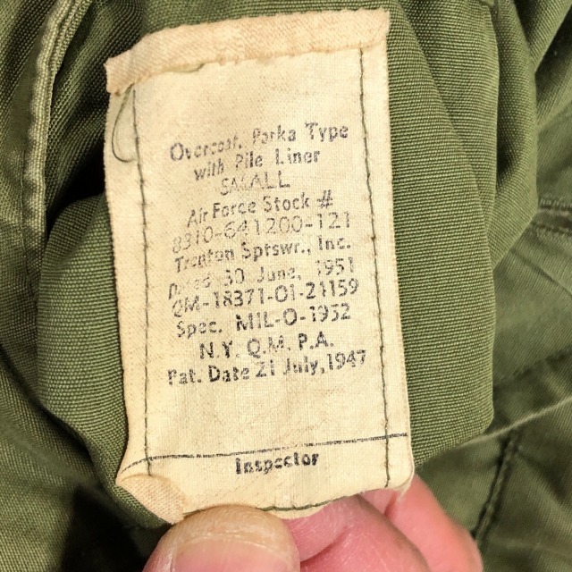 1951年度会計のアメリカ軍 M-47フィールドパーカー。