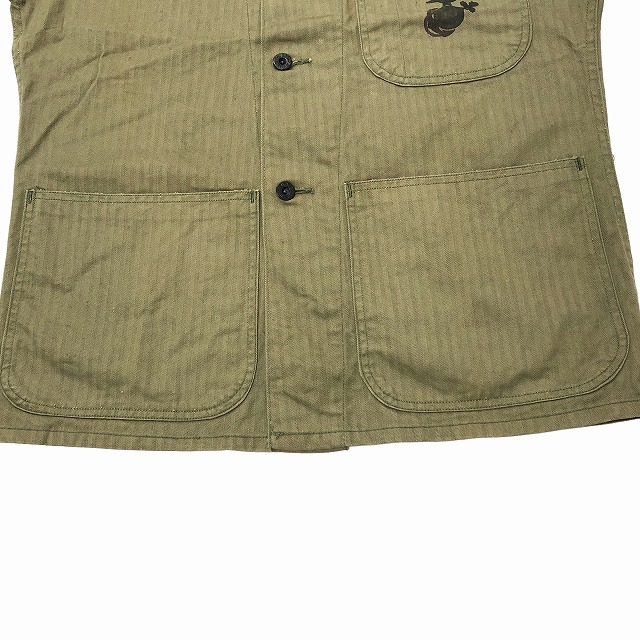 ボタンはUSMC刻印入りメタルボタン、ステッチはオリーブカラーとなります。