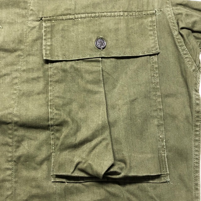 マチ付きの大きなポケットが特徴的なM-43 HBTジャケット。