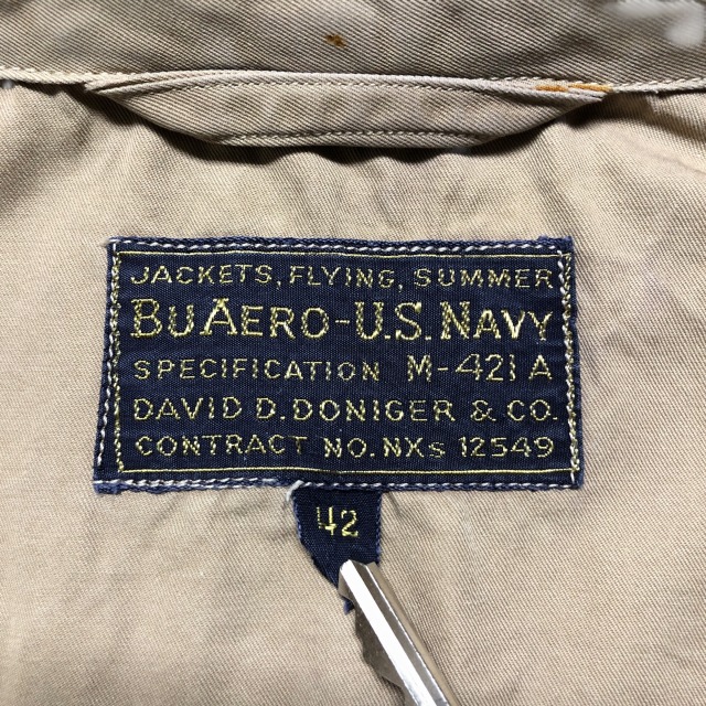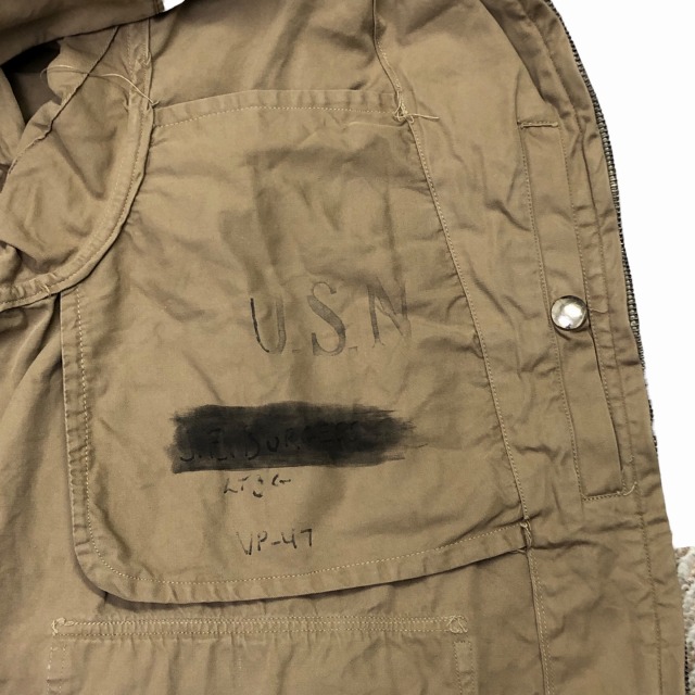 裏地にUSNのステンシル入り、サイズ表記42ですのでサイズ感良好です。