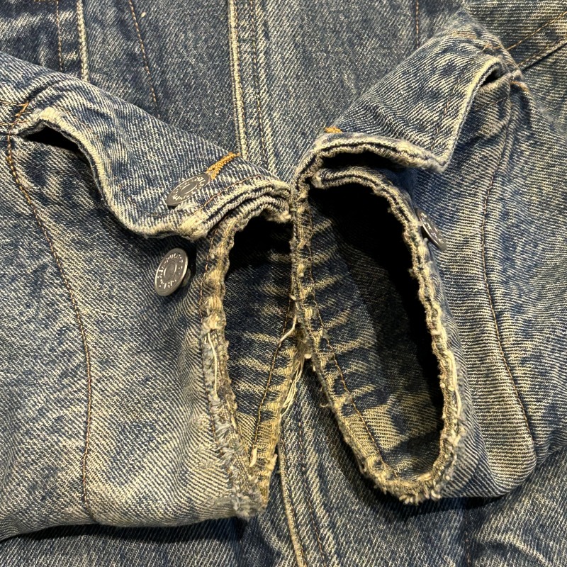 - タグがカットされております。フードの付け根部分にダメージが数か所、細かなシミがございます。袖口にダメージ、デニム特有の色落ちやアタリ等の着用感がございます。古着慣れされた方におすすめです。