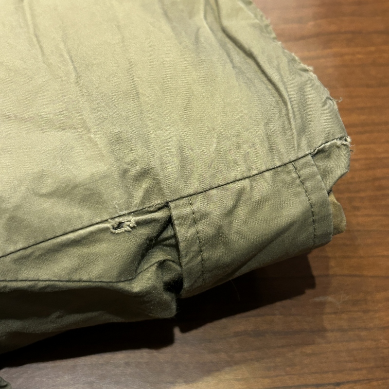 - チンストラップが欠損しております。袖に数か所ダメージやスレ、アタリ等の着用感がございます。その他に目立つダメージ等は無く、古着慣れされた方でしたらまだまだ問題無く着用していただける状態です。