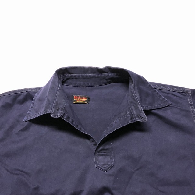 生地はコットン、ウール製リブ、1個ボタンのプルオーバータイプです。