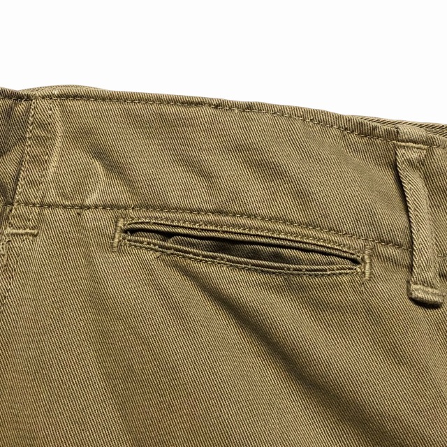 バックポケットが付かない特徴的なデザインのUSMCチノトラウザーズ。