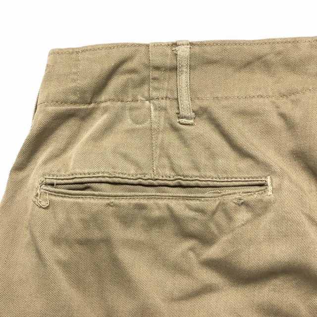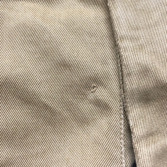 ポケットは両玉縁、センターループオフセット、縫製はダブルステッチです。