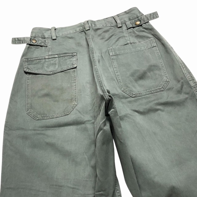フロント4ポケット、プリーツ入り、サイドアジャスターなど特徴的な作りとなっております。