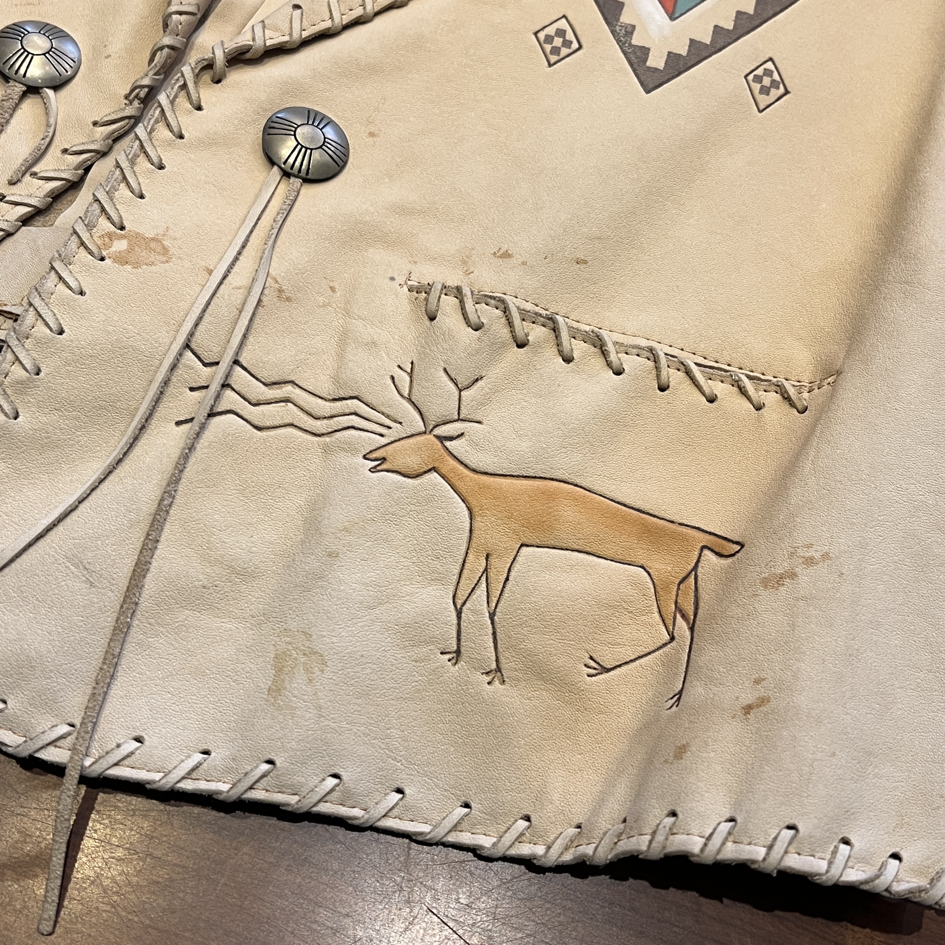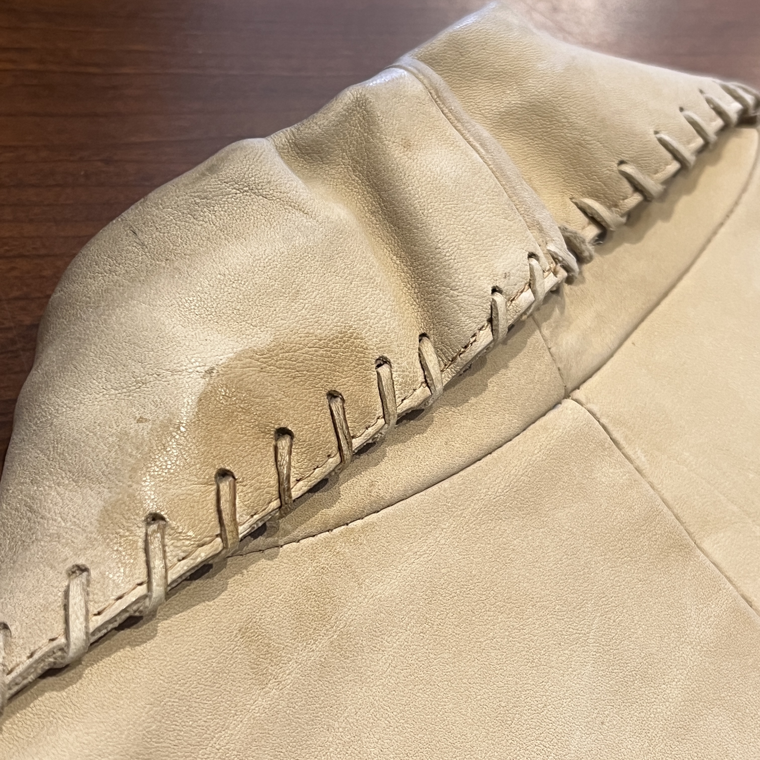 - レザー汚れやヤケ、傷や多少の硬化とコンチョボタンの紐が片方切られております。
