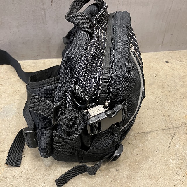 - ストラップ止めのゴム紐の伸びがみられます。また、外側のポケット内に薄汚れがみられます。その他、スレ等の使用感はございますが、ユーズド慣れされた方でしたら、まだまだ問題なく使用していただけます。