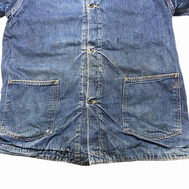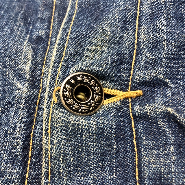 台襟無し、2ポケット、ダブルステッチなど大戦期特有の簡素化されたディティールとなっております。
