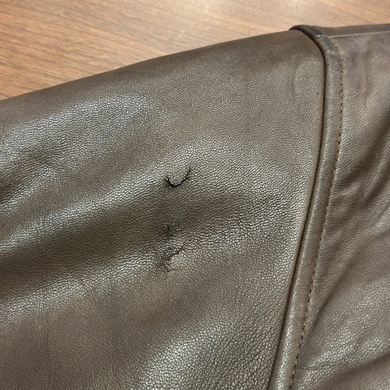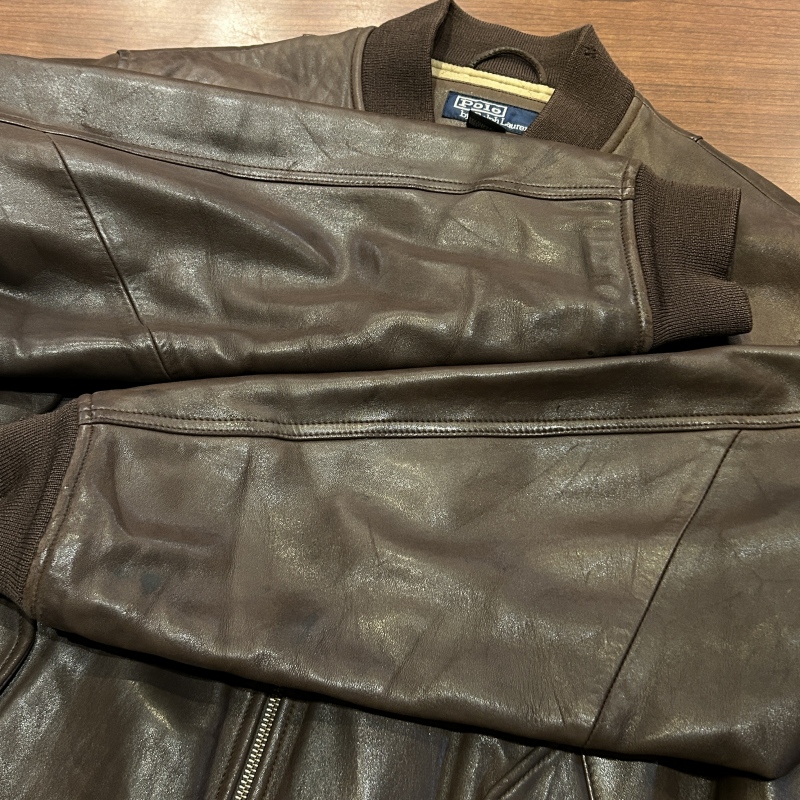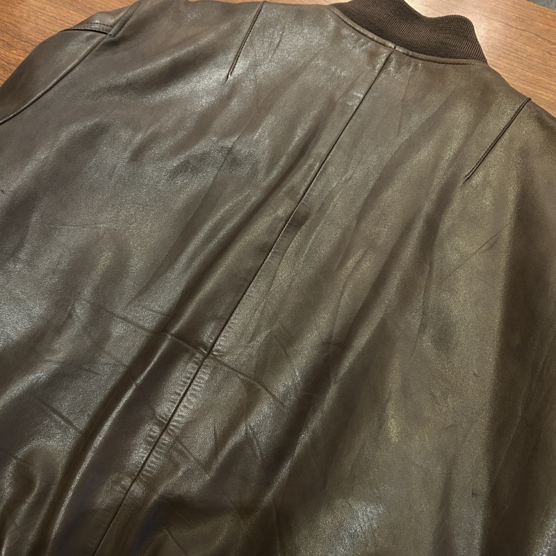 - 襟や袖リブ、右肩付近にダメージがございます。レザー特有の傷やシミ等の着用感がございます。古着慣れされた方でしたら問題無く着用していただける状態です。