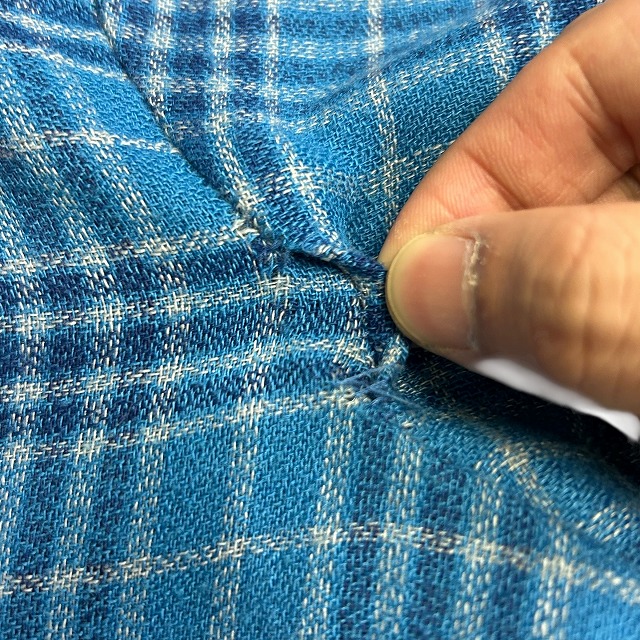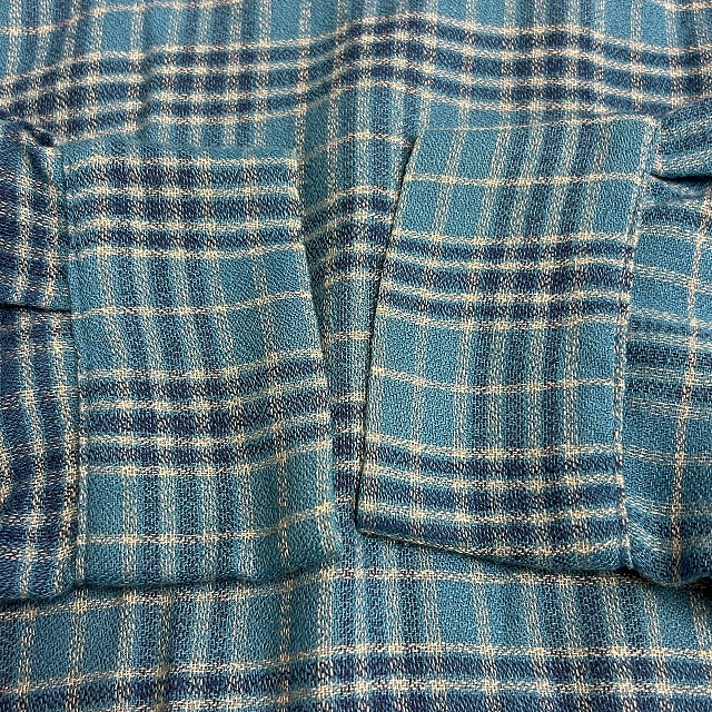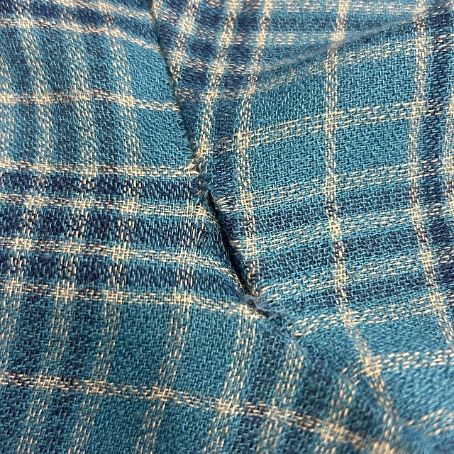 レーヨンのようなとろみのある、ブルー系の好配色チェックです!