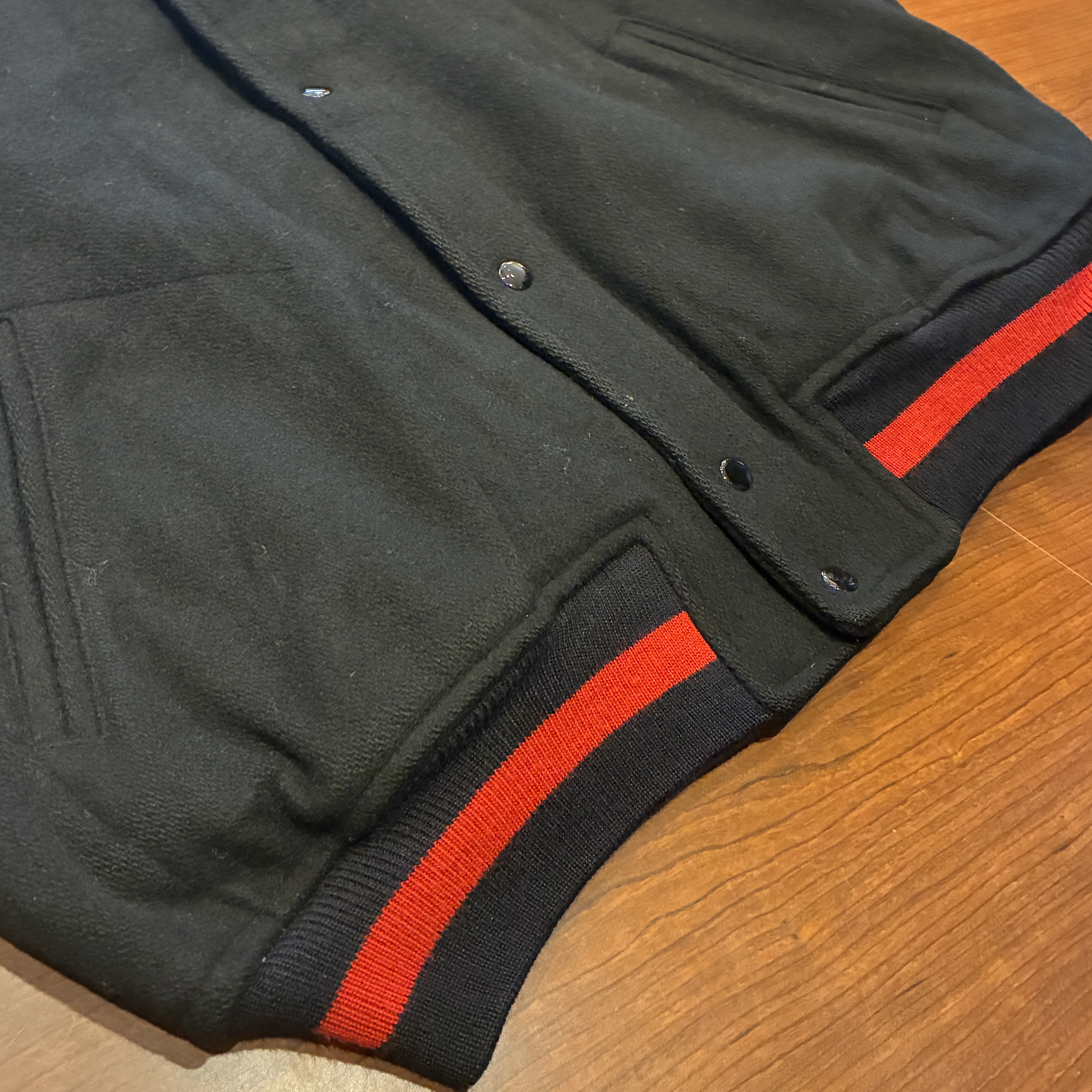- 袖口に多少の毛羽立ちや、画像の様に内襟の裏地部分が僅かに裂けていたり等が見られますが、目立つ汚れやダメージは無く問題無く着用していただける状態です。
