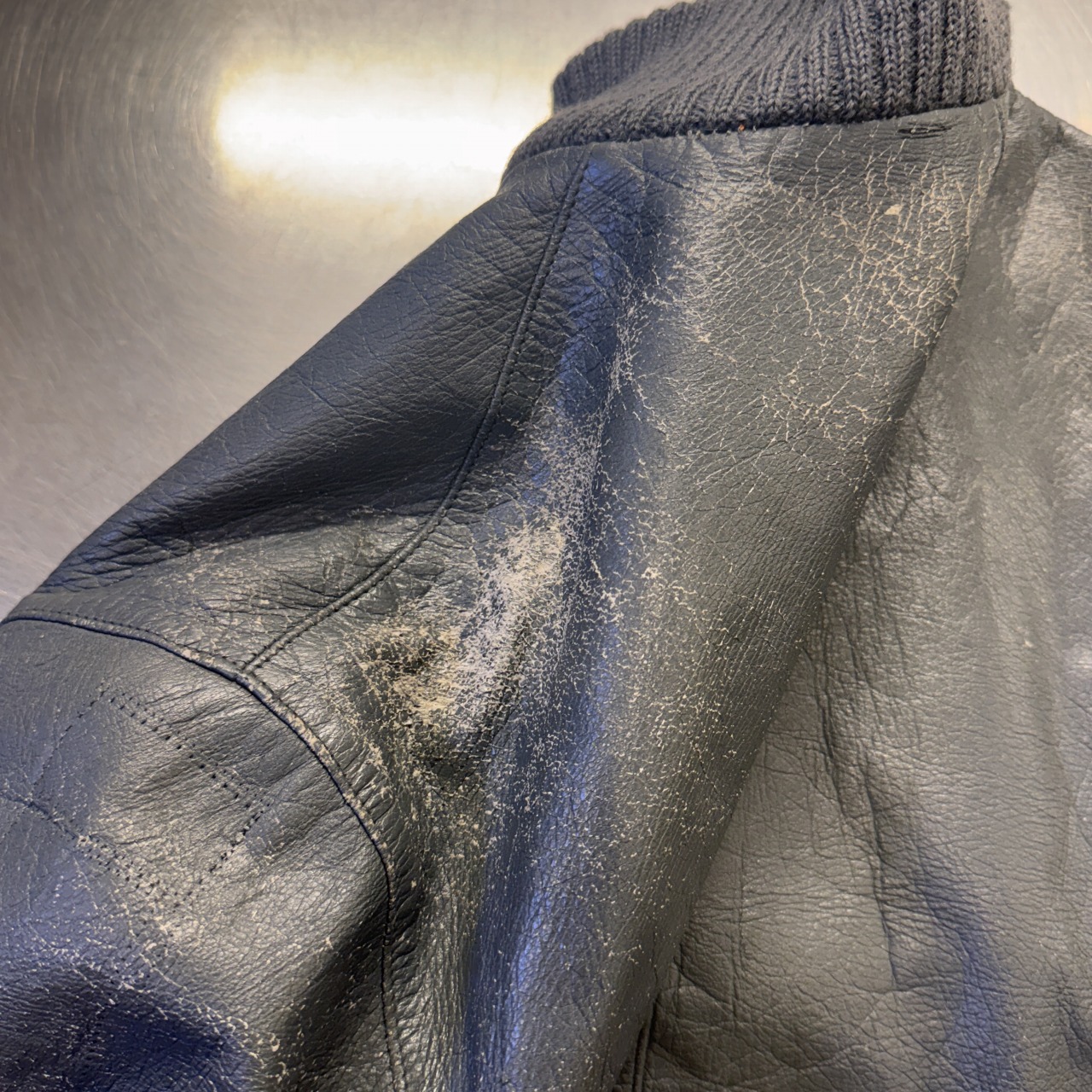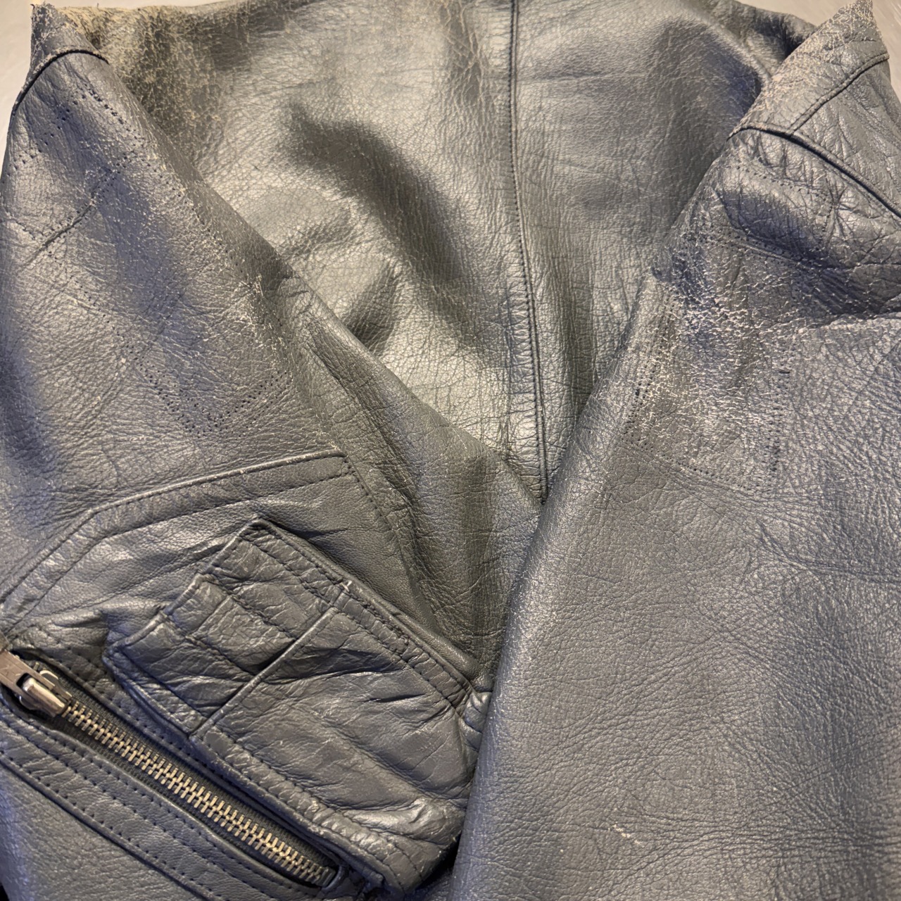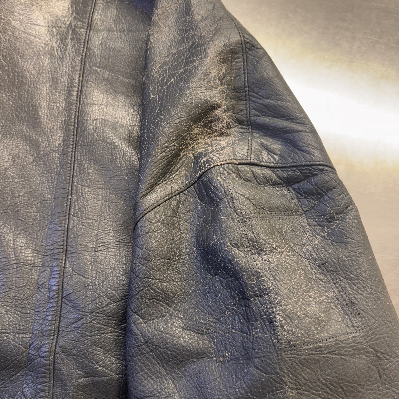 - 画像の様に肩部スレによる剥離、その他、レザー特有のスレやシワ等の着用感ございますが、問題なく着用可能な状態です。