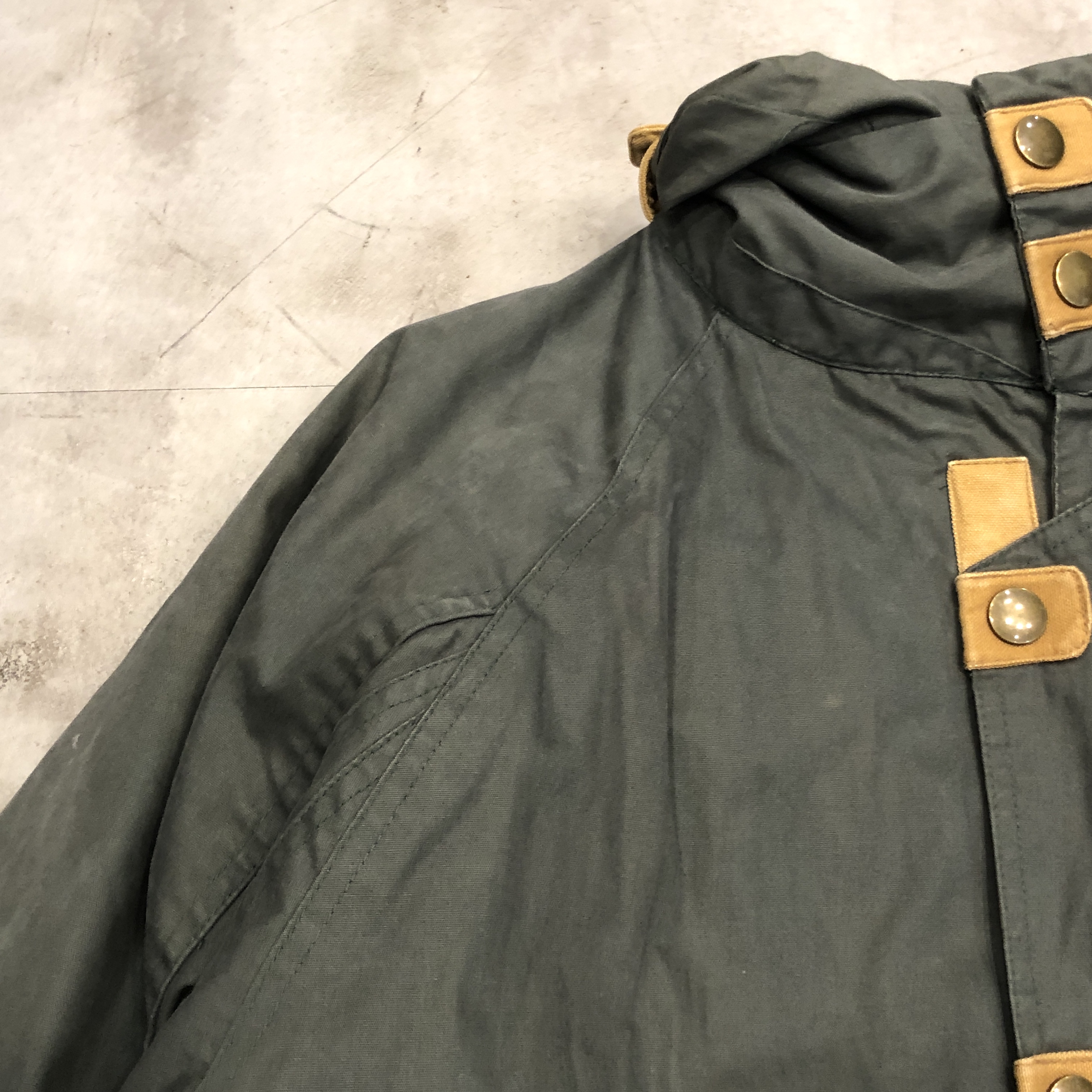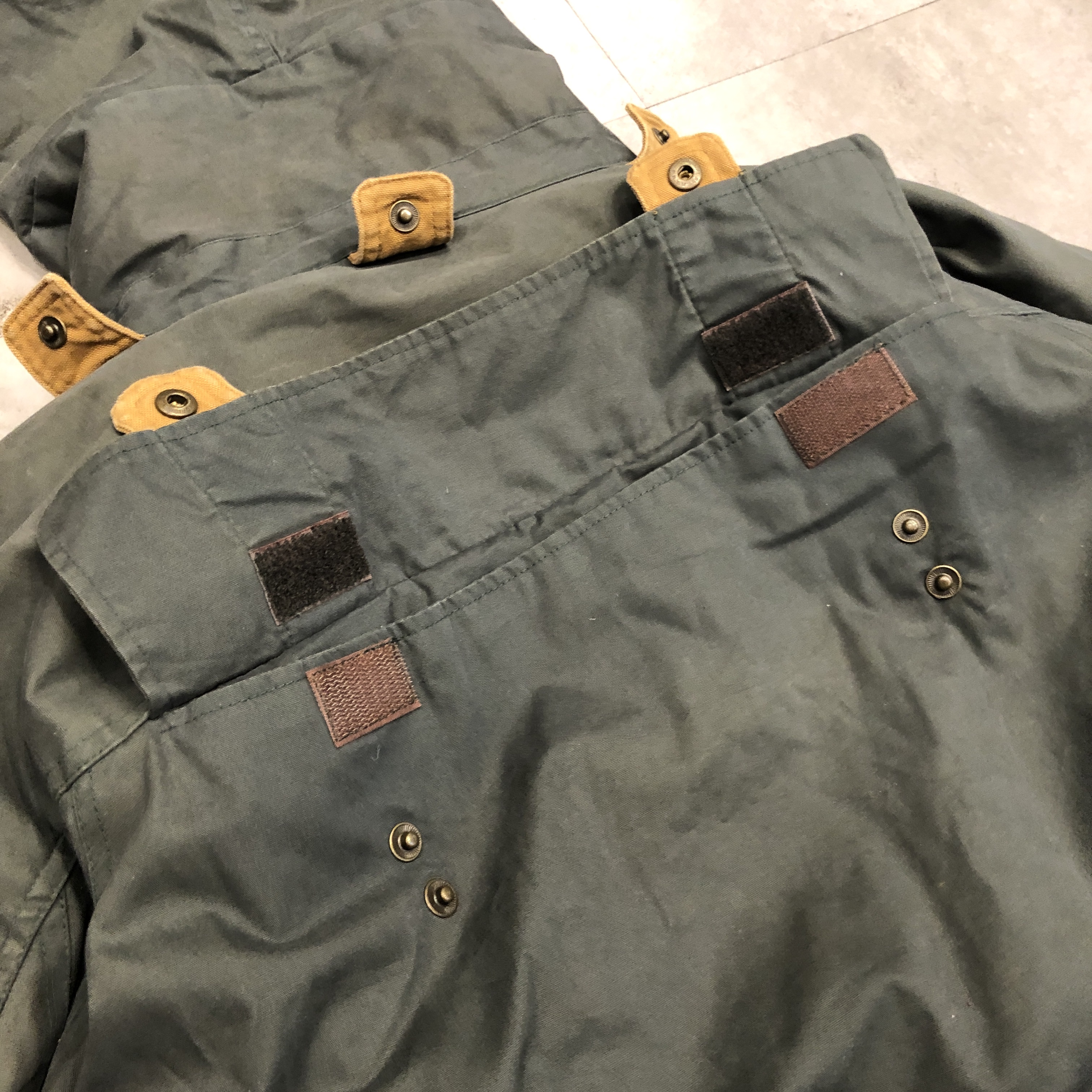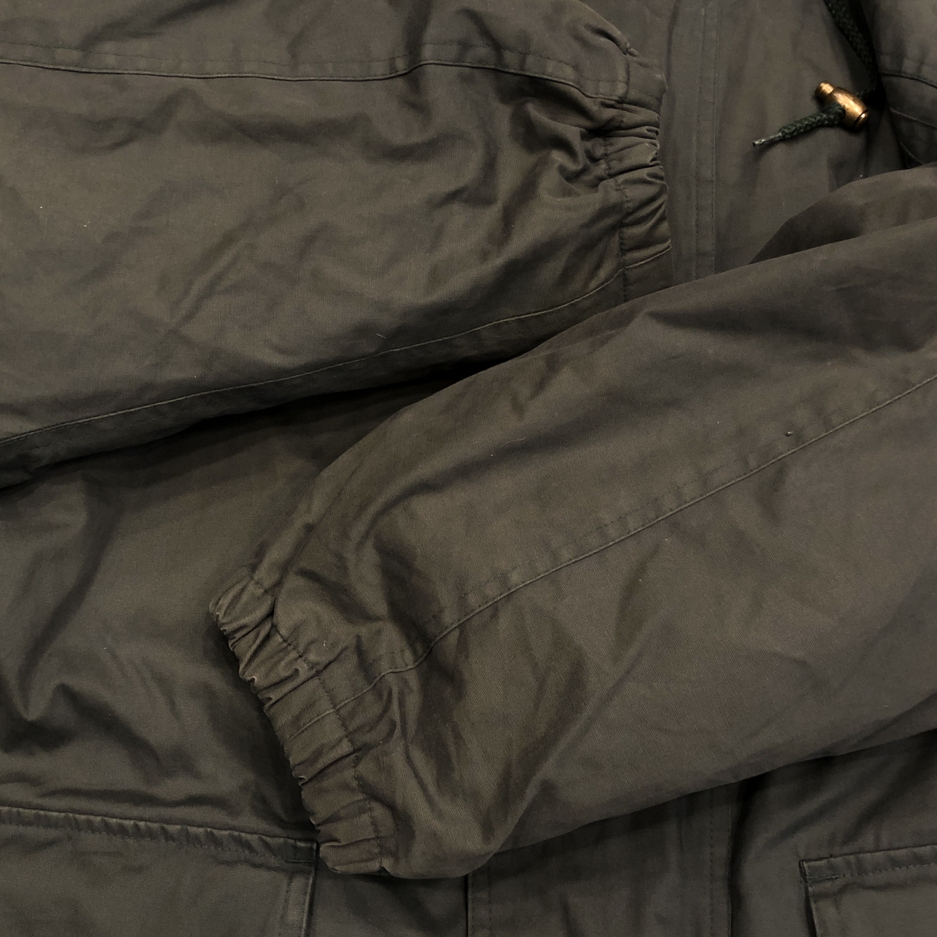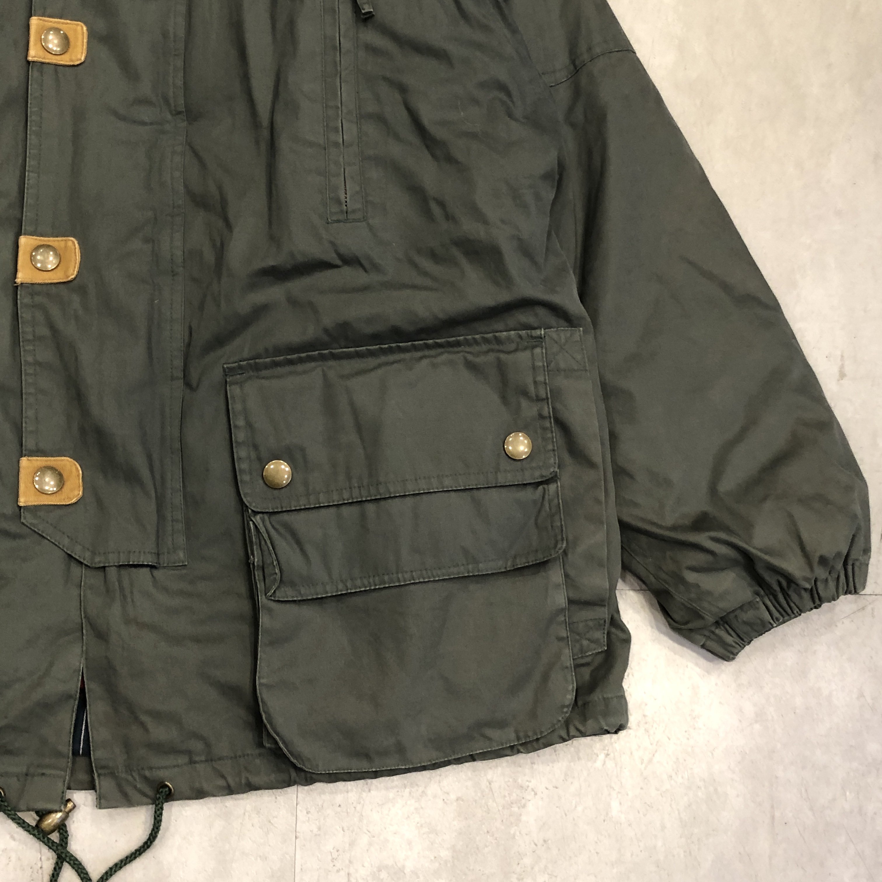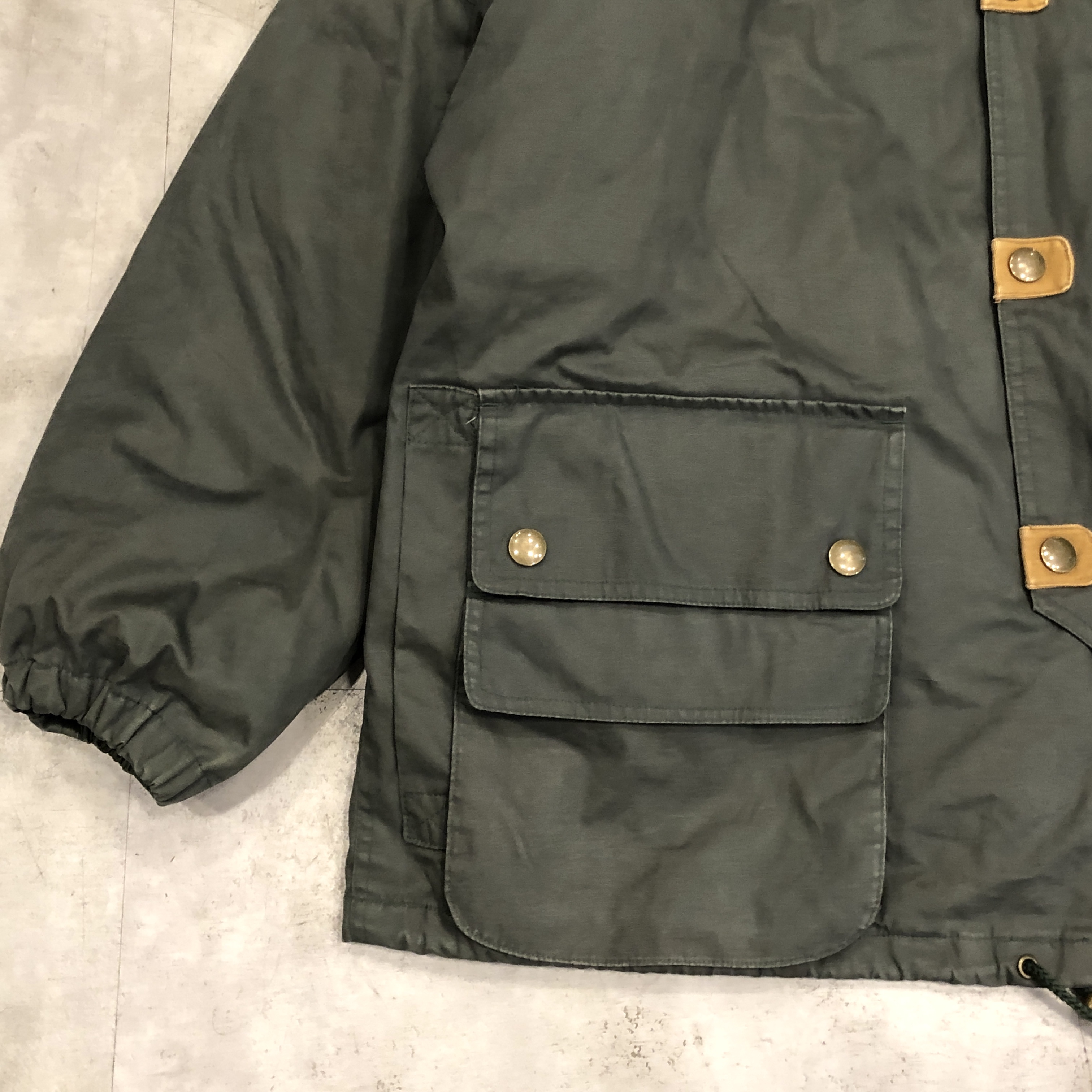 - アメリカ古き良きアウトドア文化の象徴、1902年創業の名門 WILLIS & GEIGER が手掛ける希少な“2WAYフーデッドジャケット”のご紹介です。本体のコットンシェルに象徴的なタンレザーパッチが配された武骨で味わい深い佇まいと、名だたる冒険家たちが愛した同ブランドらしい“ギアとしての服”の迫力が漂う一着。深いオリーブのボディに大容量フラップポケット、ドローコード、比翼のボタンワークなど、すべてが実用本位に設計されています。更に“2WAY構造”の仕組みになっており、内側には単体で着用可能なバーガンディの80%ダックダウン×20%フェザーの中綿キルティングライナーが備わり、象徴的なタータンチェック裏地、そして袖のワッペンが存在感を放つ軽快なダウンジャケットとしても十分成立する完成度です。本体+ライナーで冬まで対応する重衣料、ライナー単体でライトアウター、アウター単体で春秋のフィールドジャケットとして、まさに“三役”をこなす万能アウターであり、BarbourやFilson、Eddie Bauerなどクラシックなアウトドアギアが好きな方には特に響くはず。ヴィンテージW&Gの中でもここまで実用性の強い個体は多くなく、ブランドの真髄である“本物の道具としてのウェア”を味わえる逸品です。