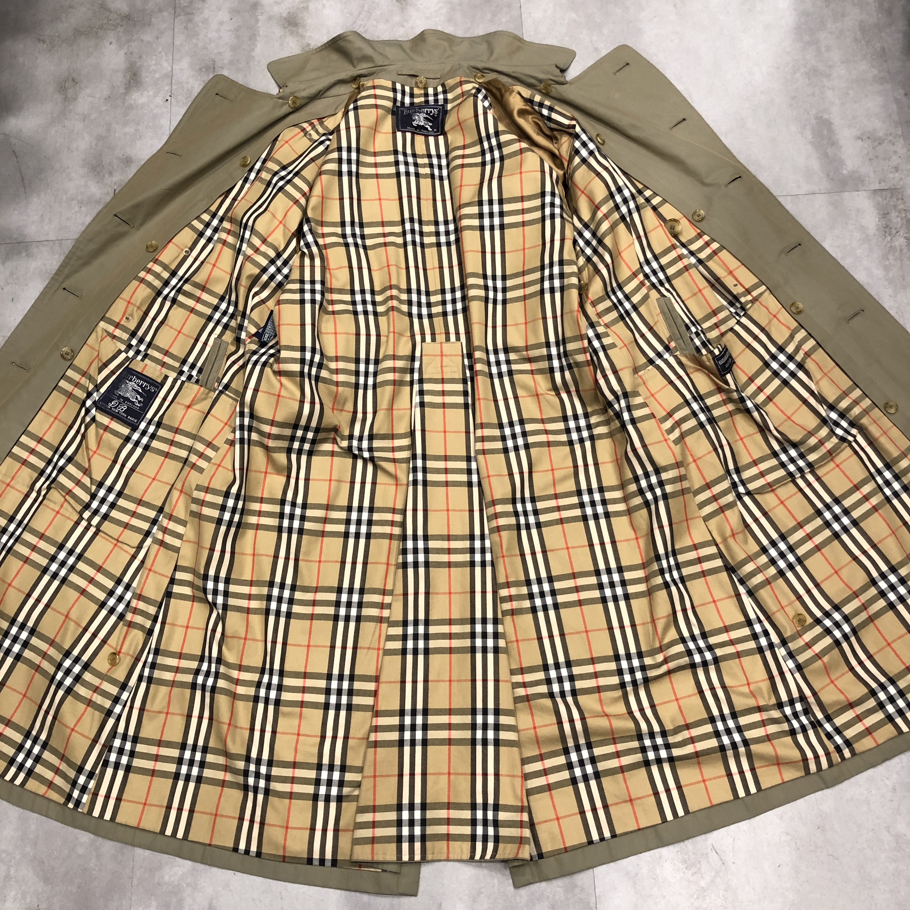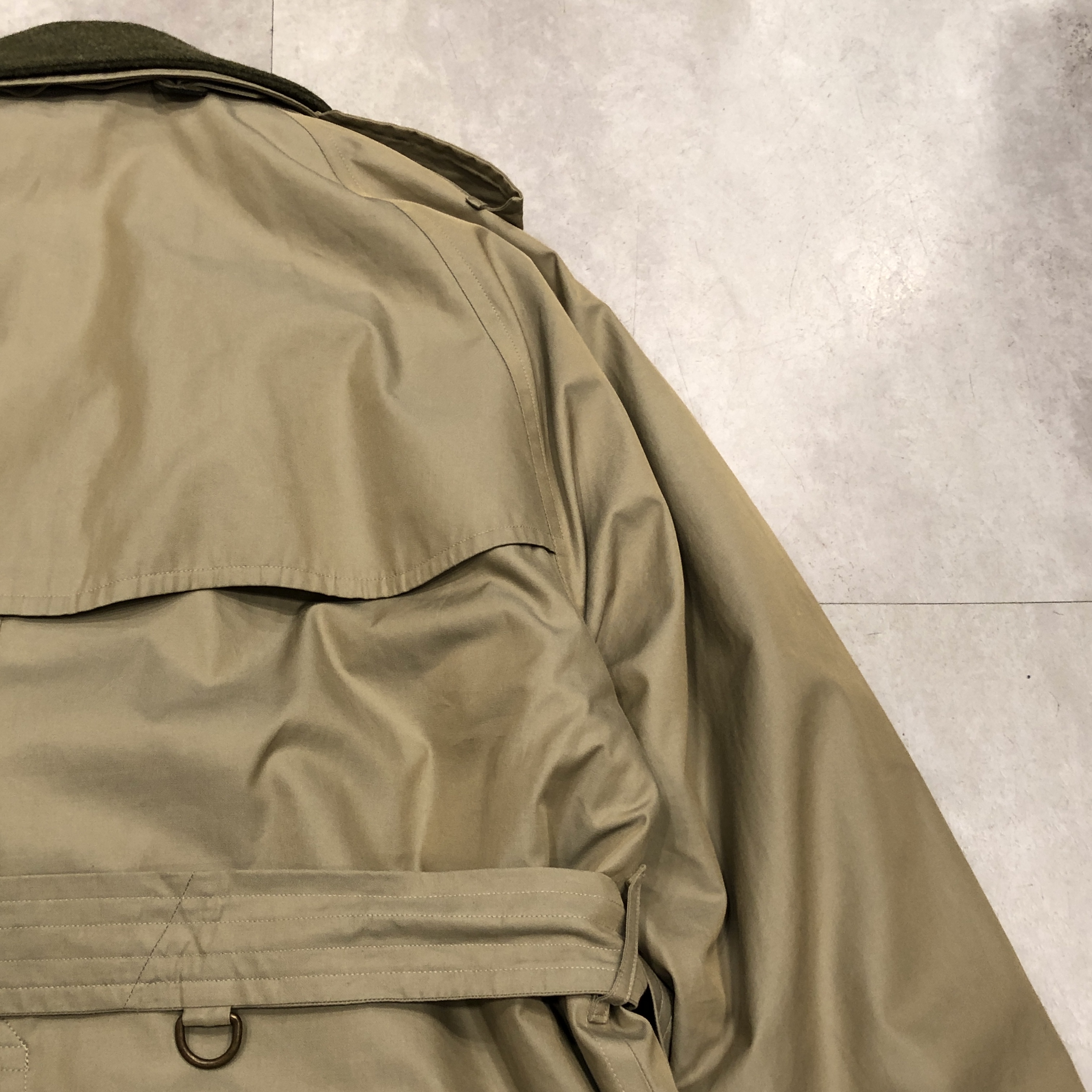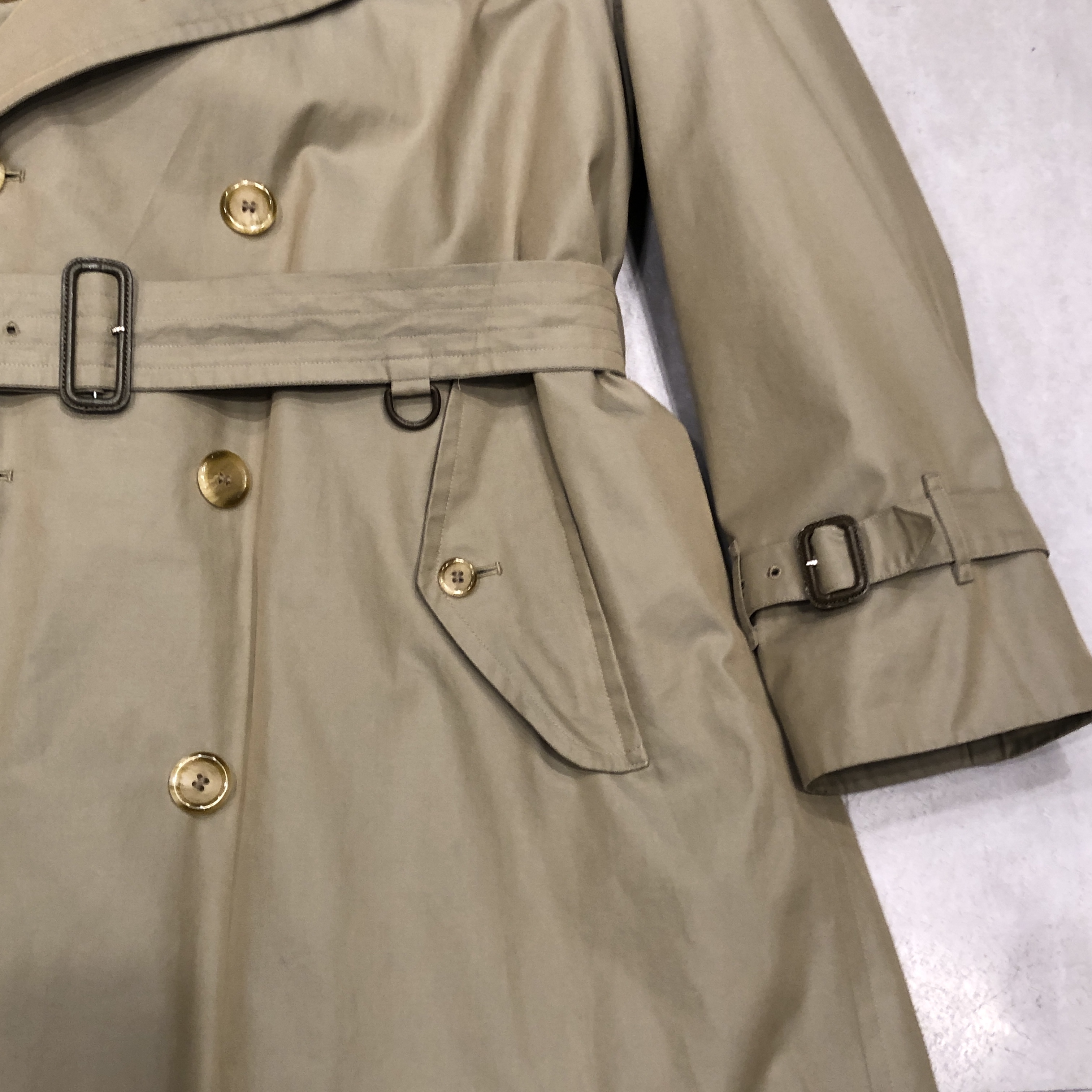 トレンチコートの原点である軍仕様のディテール(エポレット・ガンパッチ・Dリング・深めのインバーテッドプリーツ)を完備しながら、贅沢なウールライナーが付属した “完全体” と呼べる個体、しかも54 Long表記が示す通り長身の英国紳士向けに仕立てられた希少ラインで、サイズ・年代・状態の三拍子が揃った、ビンテージBurberrysの真髄を堪能できる一本です。探されていた方、この機会にぜひ。