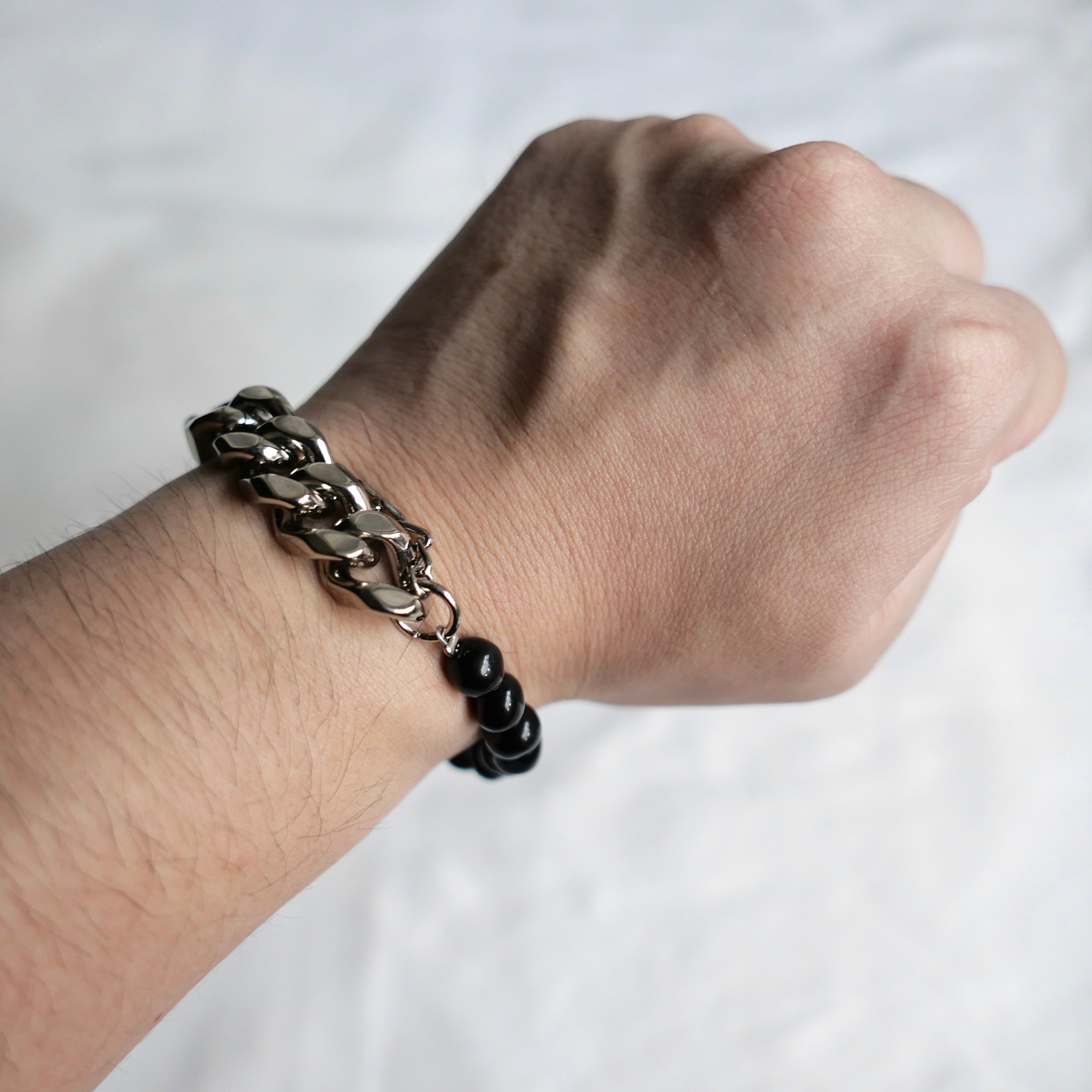 天然石と真鍮を組み合わせた当ブランドらしい唯一無二のデザインはメインのブレスレットとしては勿論、重ね付けもしやすいボリュームです。