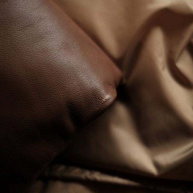 出回っている数が極端に少なく所謂レアアイテムとされているレザー個体のご紹介です。ディテールはモンクレールの銘品PARISに似ており、フードが元から付かないのが違いとなります。