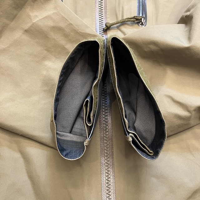 - 内側裾シームテープの剥がれ、フード内側シームテープにひび割れがみられます。
