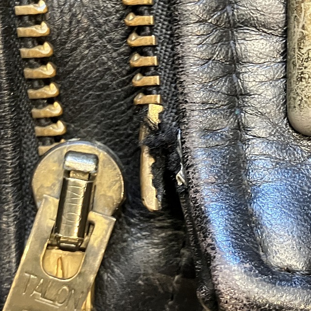 また、右袖ジッパーの歯欠け、フロントメインジッパー下の裂けにより開閉しずらくなっております。