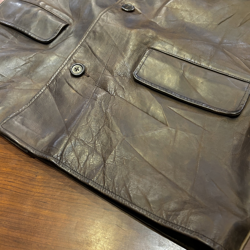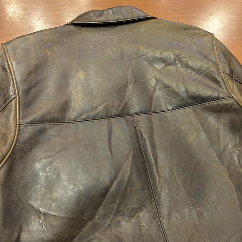 - レザー特有の傷やシワ等の着用感がございますが、その他に目立つダメージ等は無く、まだまだ問題無く着用していただける状態です。