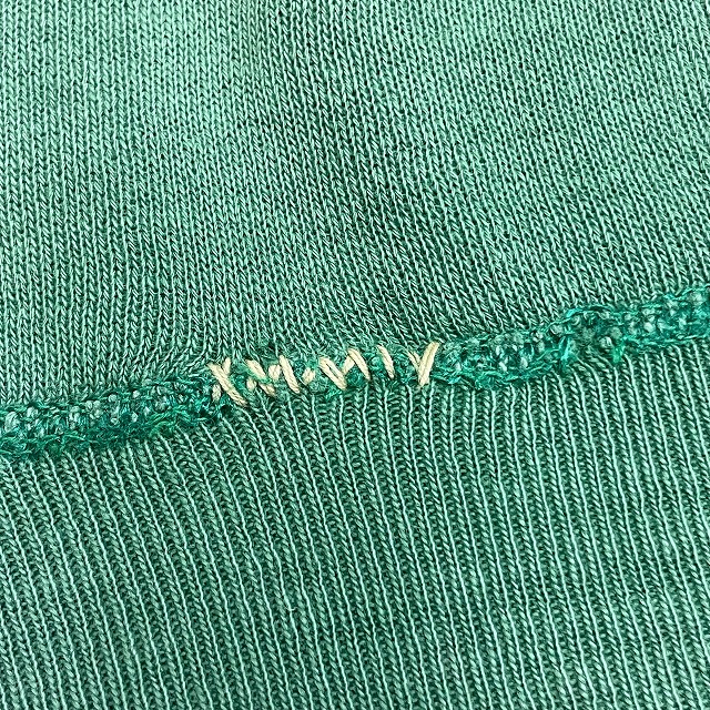 ネック部分、前後裾に手縫いで簡易的なお直しがございます。