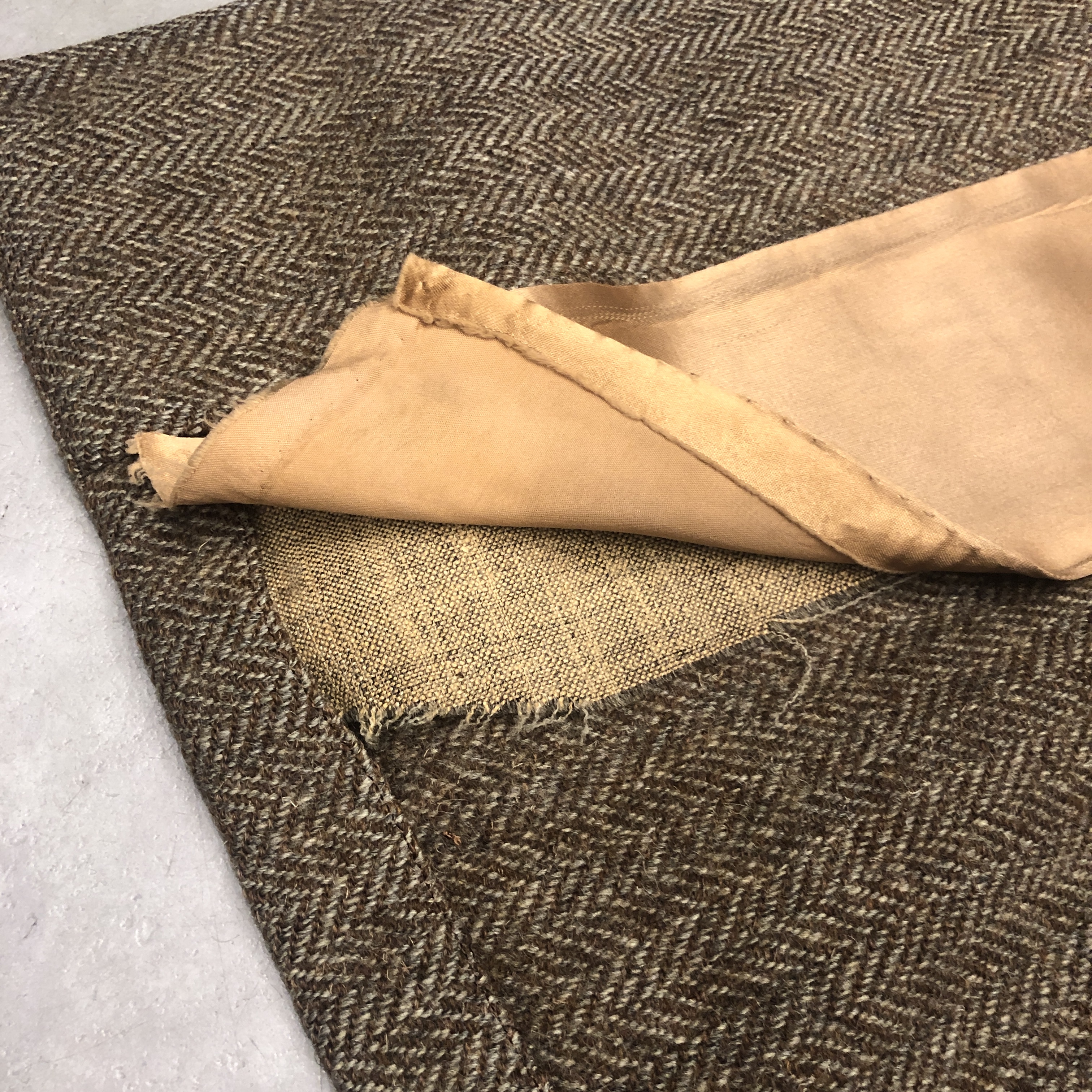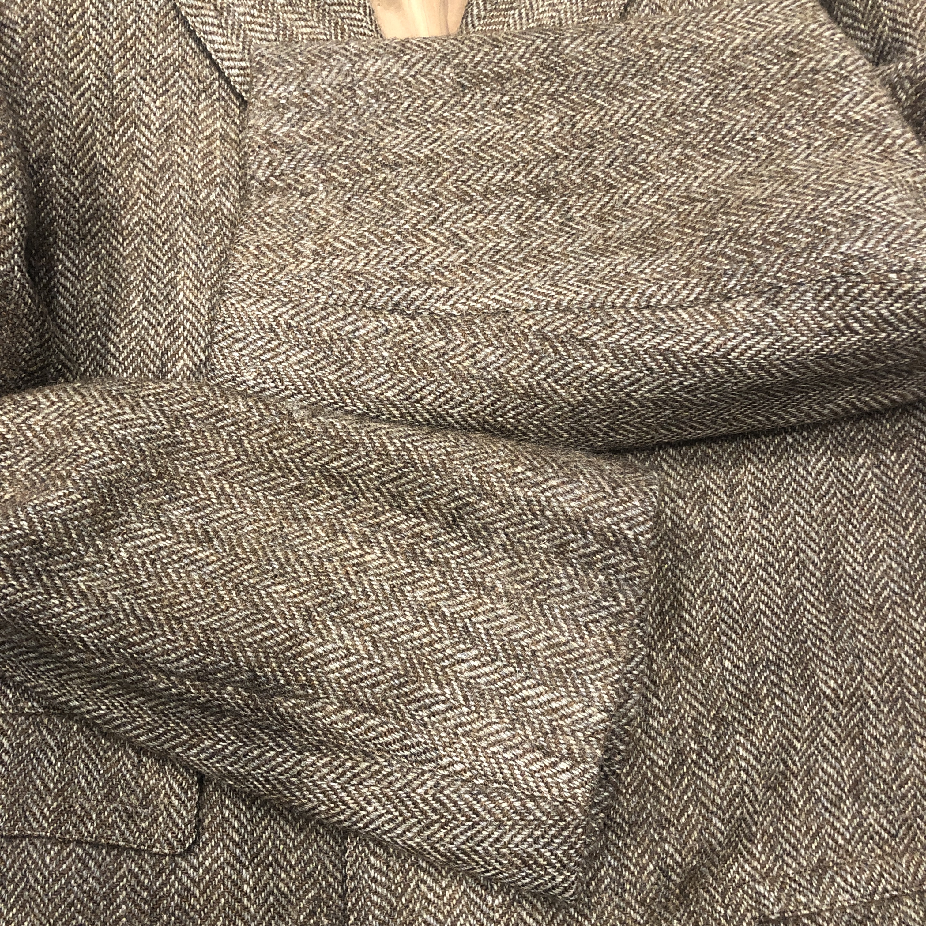 最大の見どころは、当時の高級紳士服にのみ許された 贅沢な仕立て、そして密度の高い 重厚ウールのヘリンボーン。軽やかさとは正反対の、時代を超えて体に馴染むあの“古いウールの温度”がしっかりと残っています。