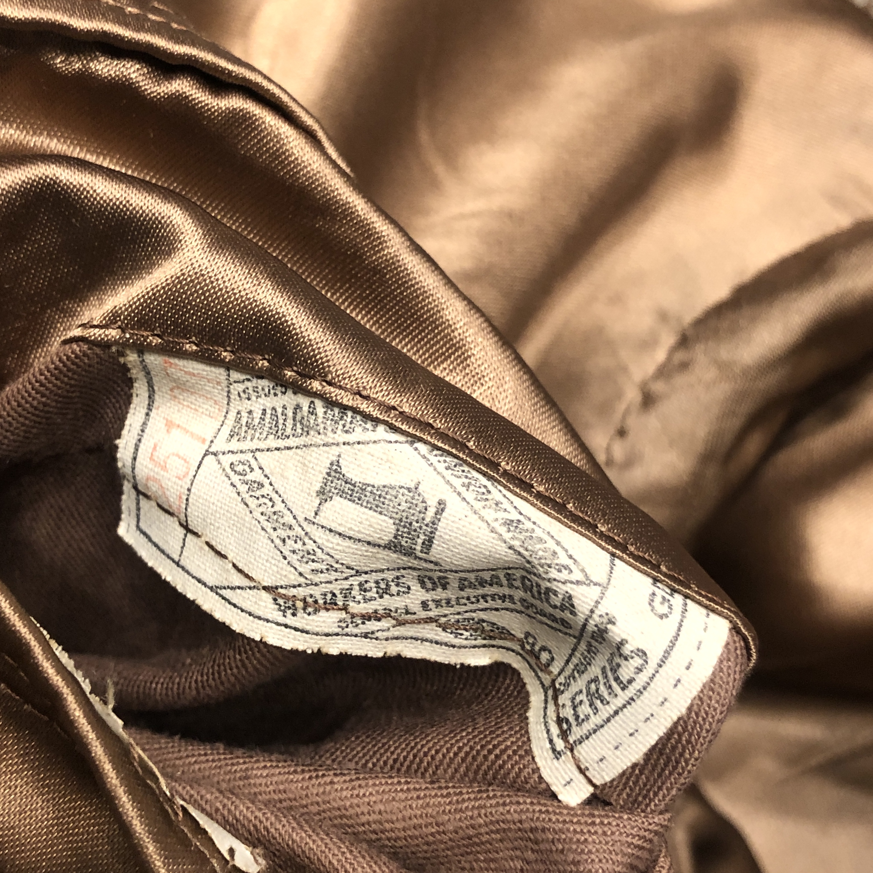 裏地も当時らしい銅色のレーヨンサテンで、独特の光沢がアンティークの雰囲気をさらに高めています。