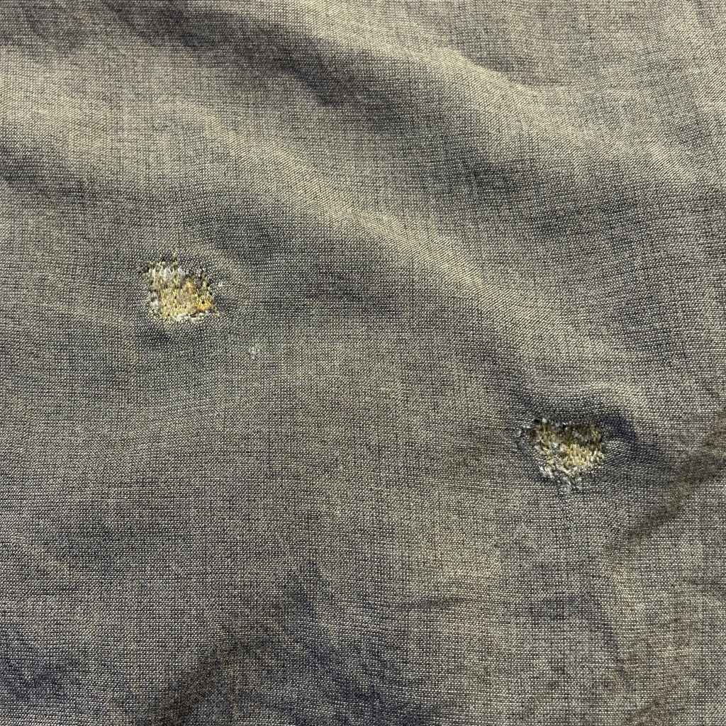 - 画像の様にリペア、スレ、小穴、袖にリステッチ、使用感がございますが、着用の問題になる様な著しい汚れやダメージ等は無く、古着慣れされた方でしたら、着用可能な状態になります。