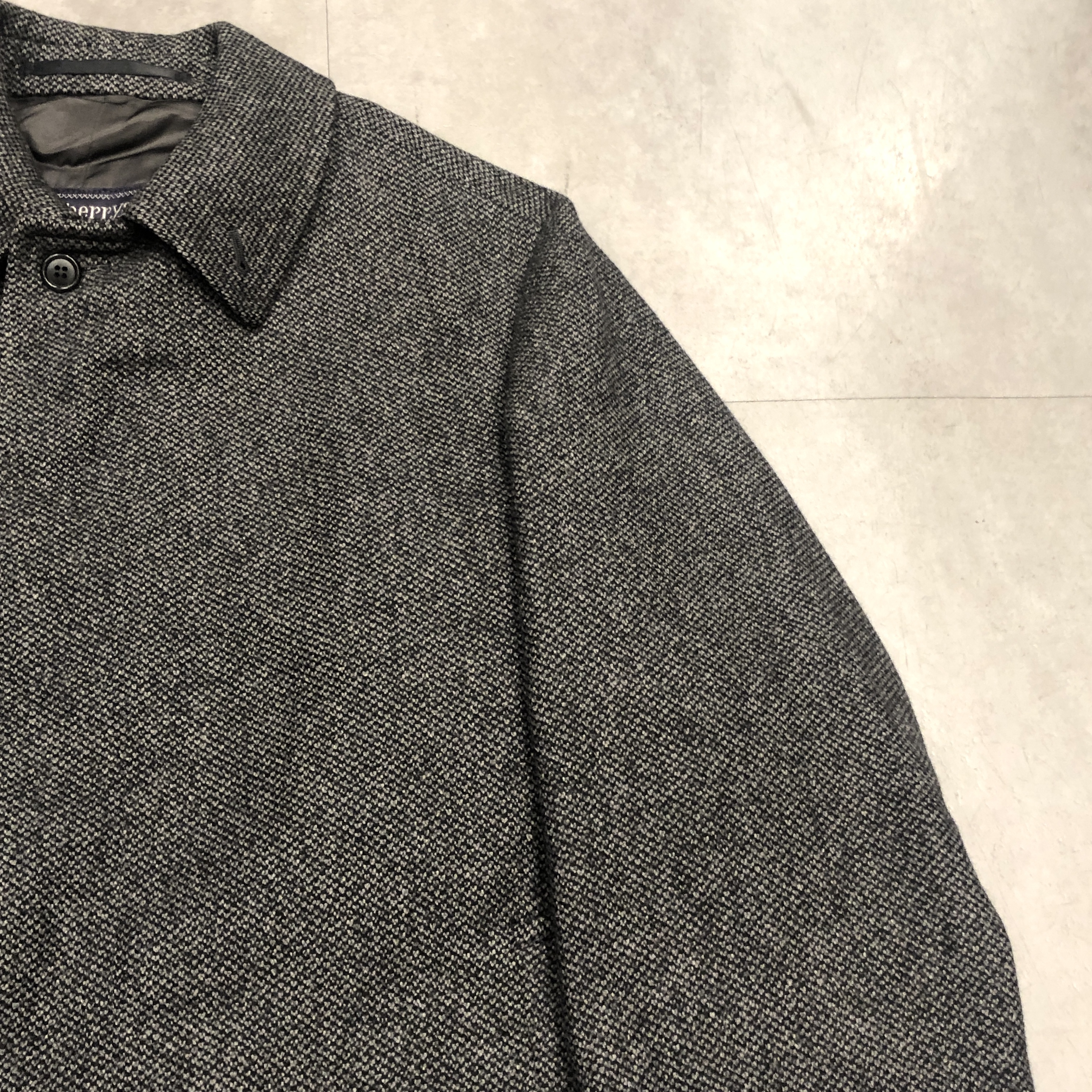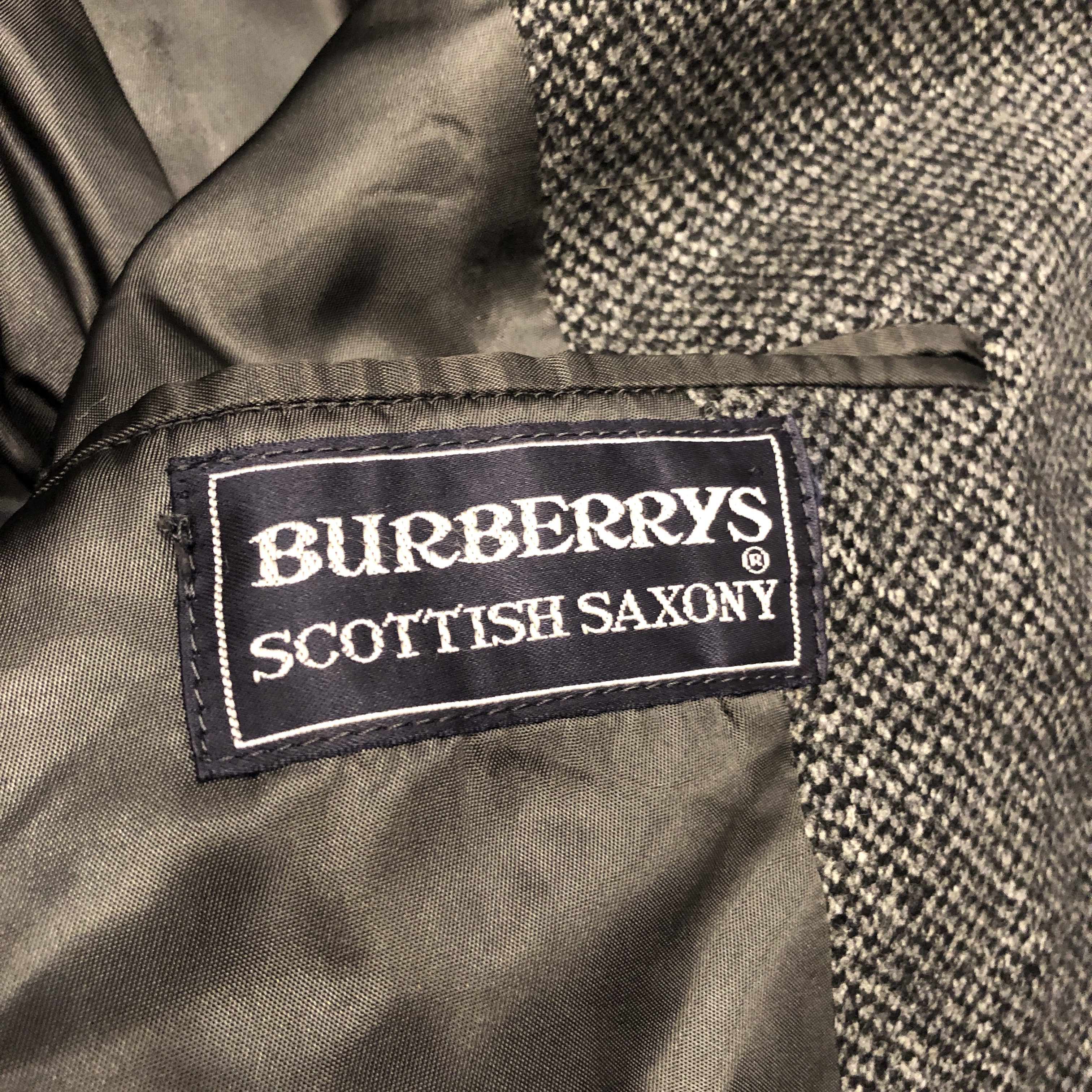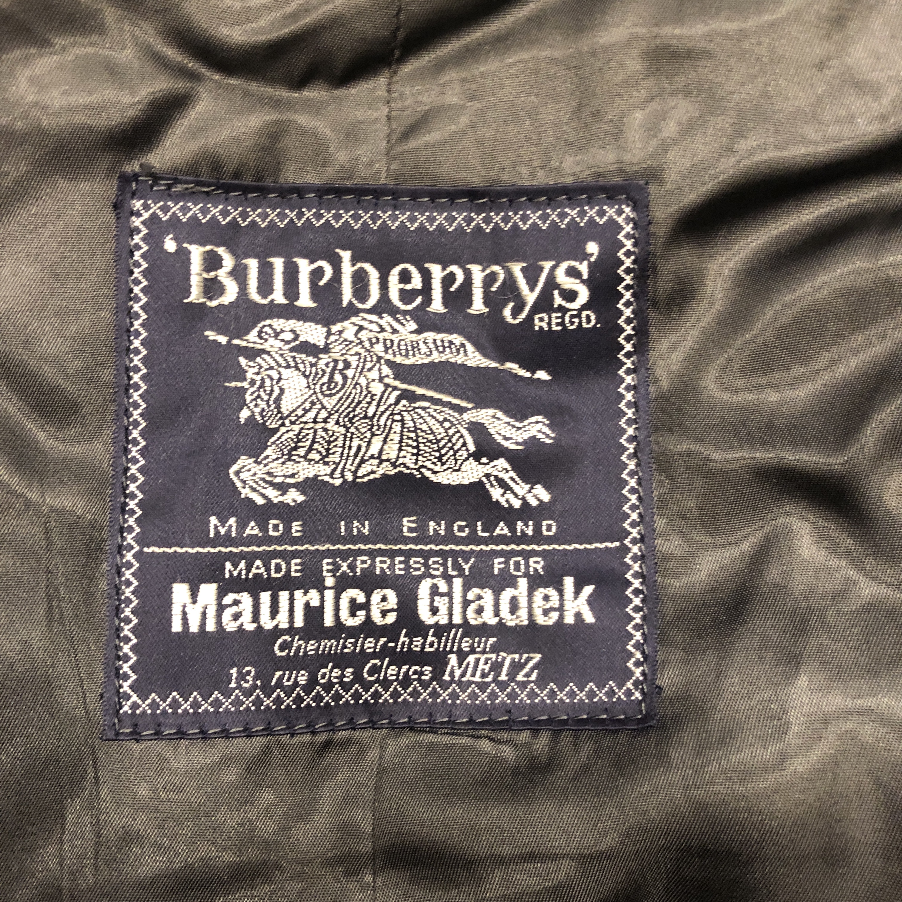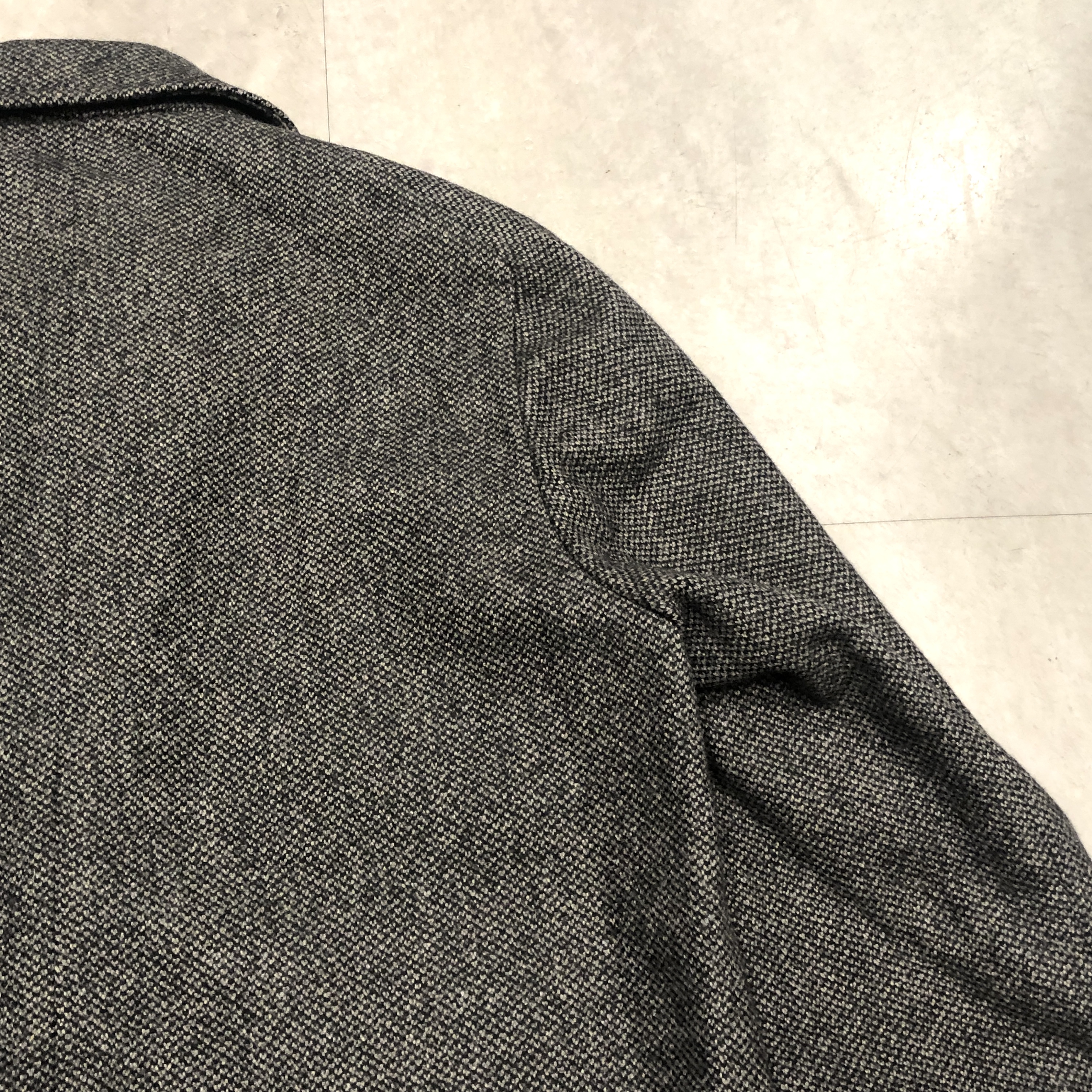 BURBERRYのスコティッシュサクソニーのサドルショルダーコートのご紹介です。グレーベースの細かなミックスツイードは、スコットランド製サクソニーウール(タグ表記100%WOOL)ならではのふくらみと柔らかさがありつつ、ぎゅっと目が詰まっていて冬場のアウターとしてとても心強い質感。肩は所謂サドルショルダーで、シルエットが実にエレガントです。フロントは比翼仕立てで、余計な装飾を削ぎ落としたミニマルな表情ですが、裏側には「MADE EXPRESSLY FOR Maurice Gladek, METZ」と入るスペシャルタグが付き、ヨーロッパの高級紳士服店別注で仕立てられたグレードの高さがうかがえます。ライニングは100%ビスコースで袖通しなめらか、サイズは表記46 REGのゆったりとしたフィッティング。スーツの上からガバッと羽織ってもシルエットが崩れにくく、ニット+デニムに合わせて少しラフに着崩してもサマになる、まさに“上質な日常着”としてのバーバリーの真骨頂を味わっていただけるコートだと思います。