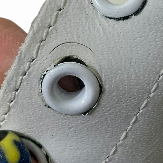 画像のように保管に伴う汚れ、スレがあり、ハトメが取れかかっている箇所がございます。