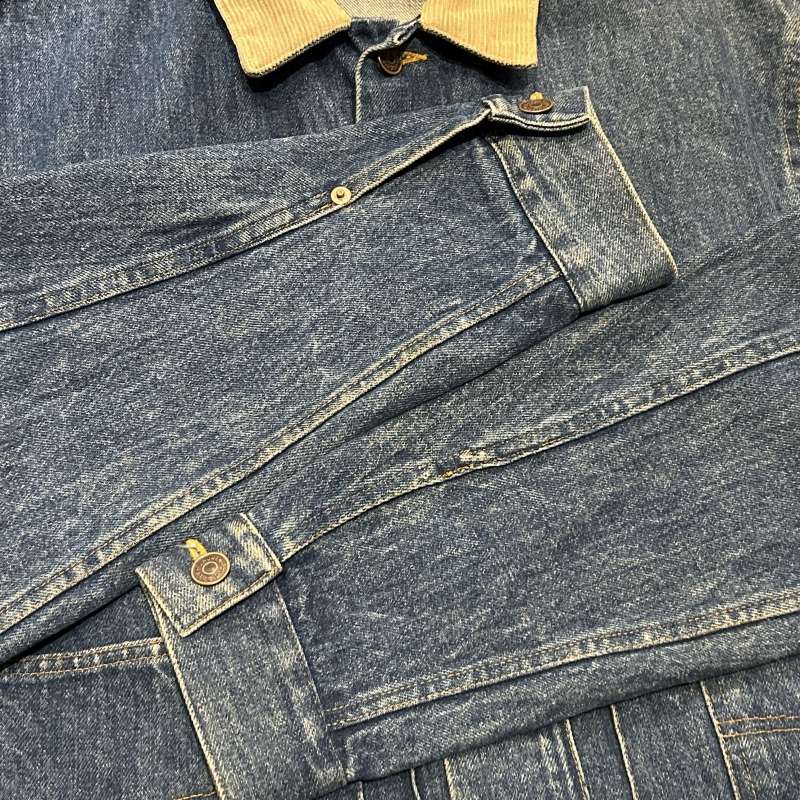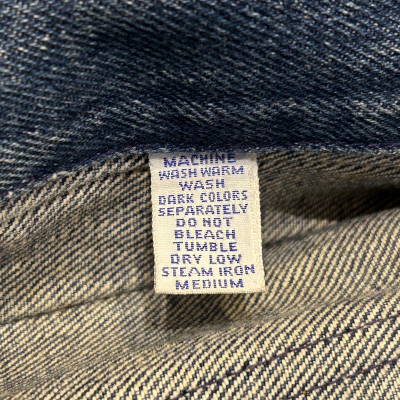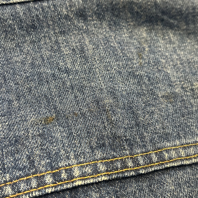 - 袖や後身頃のバックルのリベットが欠損しております。デニム特有の色落ちやアタリ等の着用感がございますが、その他に目立つダメージ等は無く、古着慣れされた方でしたら問題無く着用していただける状態です。