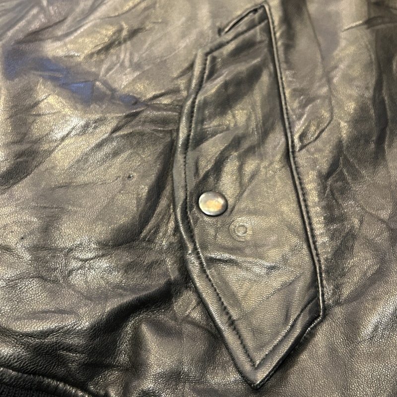 - 画像の様に右袖にダメージや裏地のステッチ抜け、レザー特有の傷やシワ等の着用感がございます。着用には問題無く古着慣れされた方におすすめです。