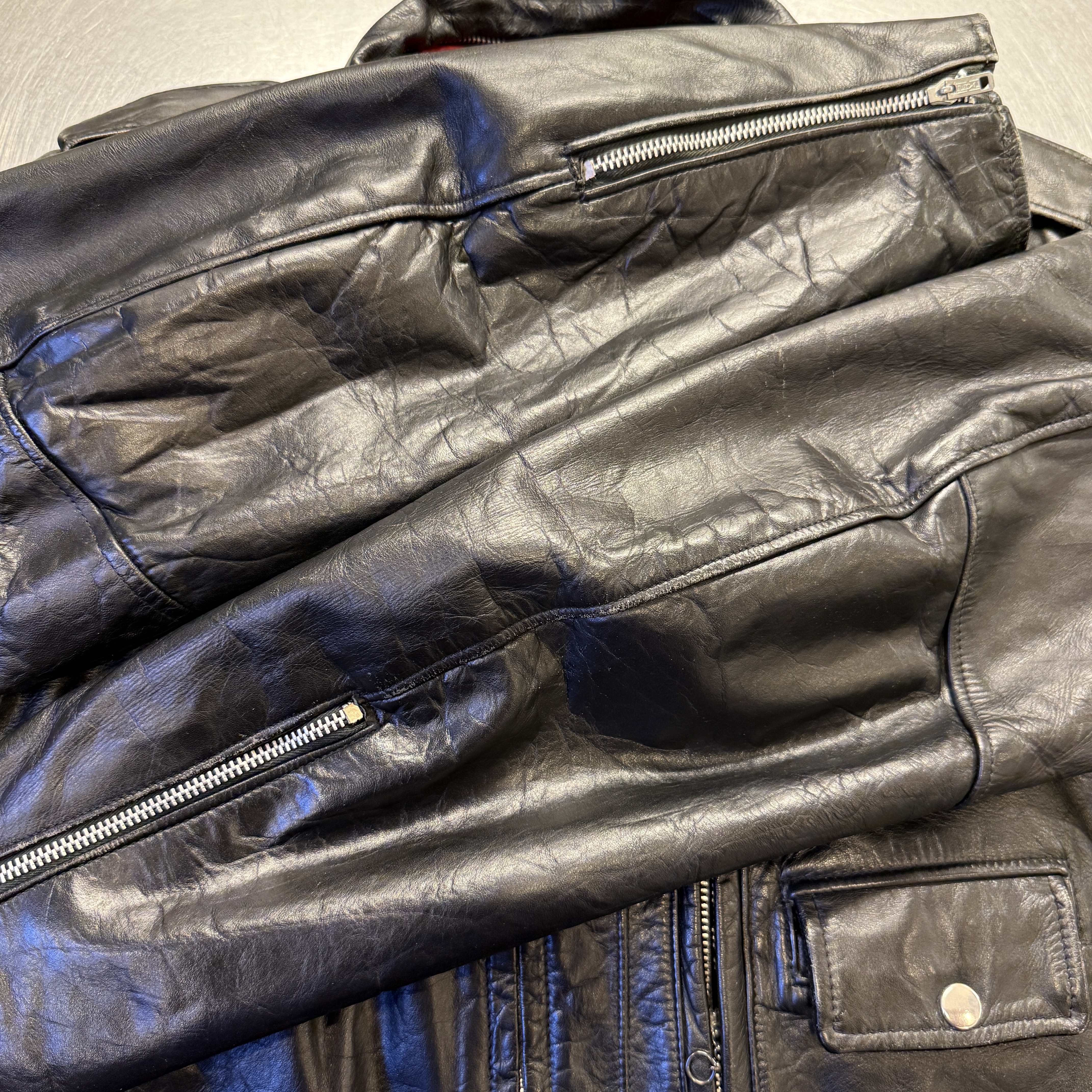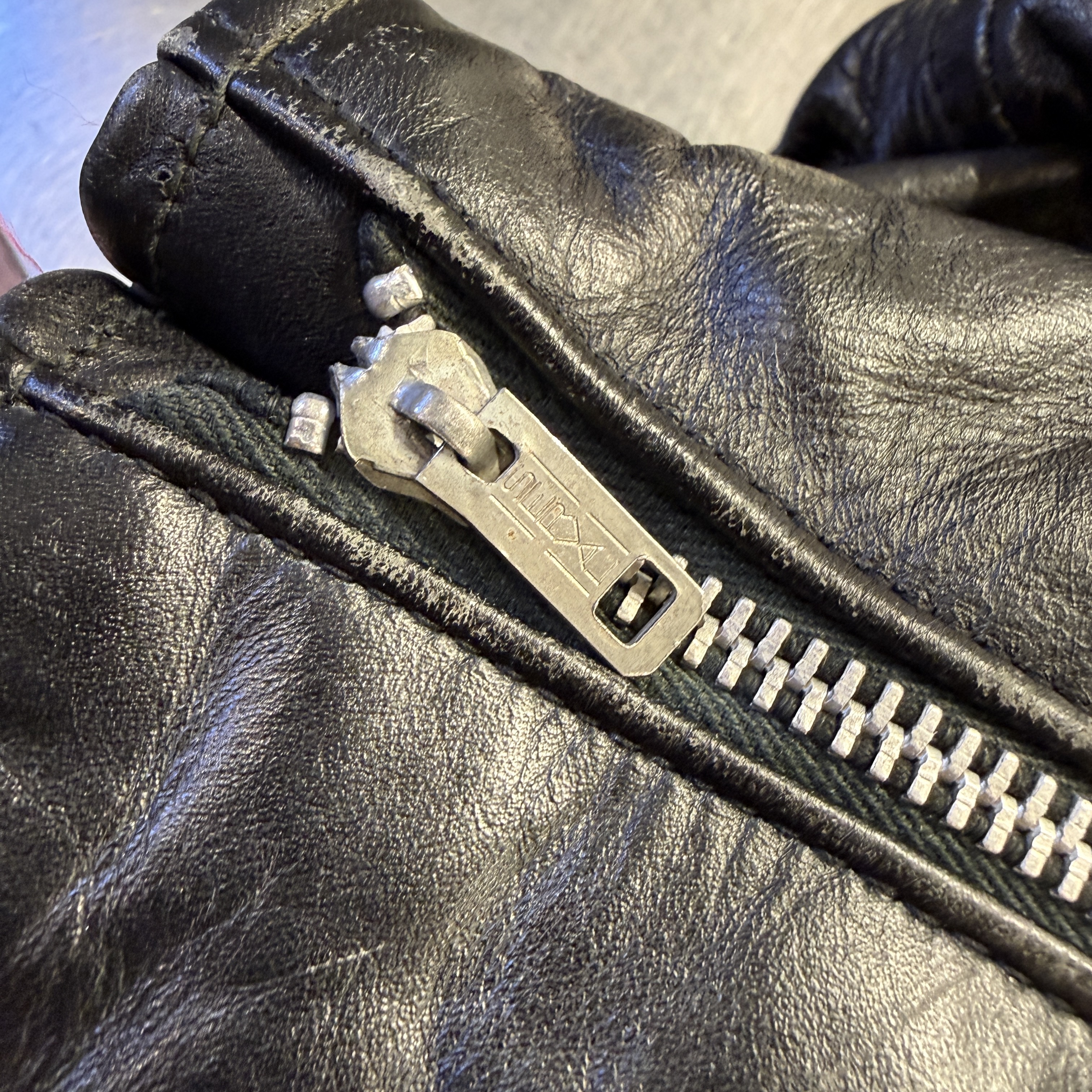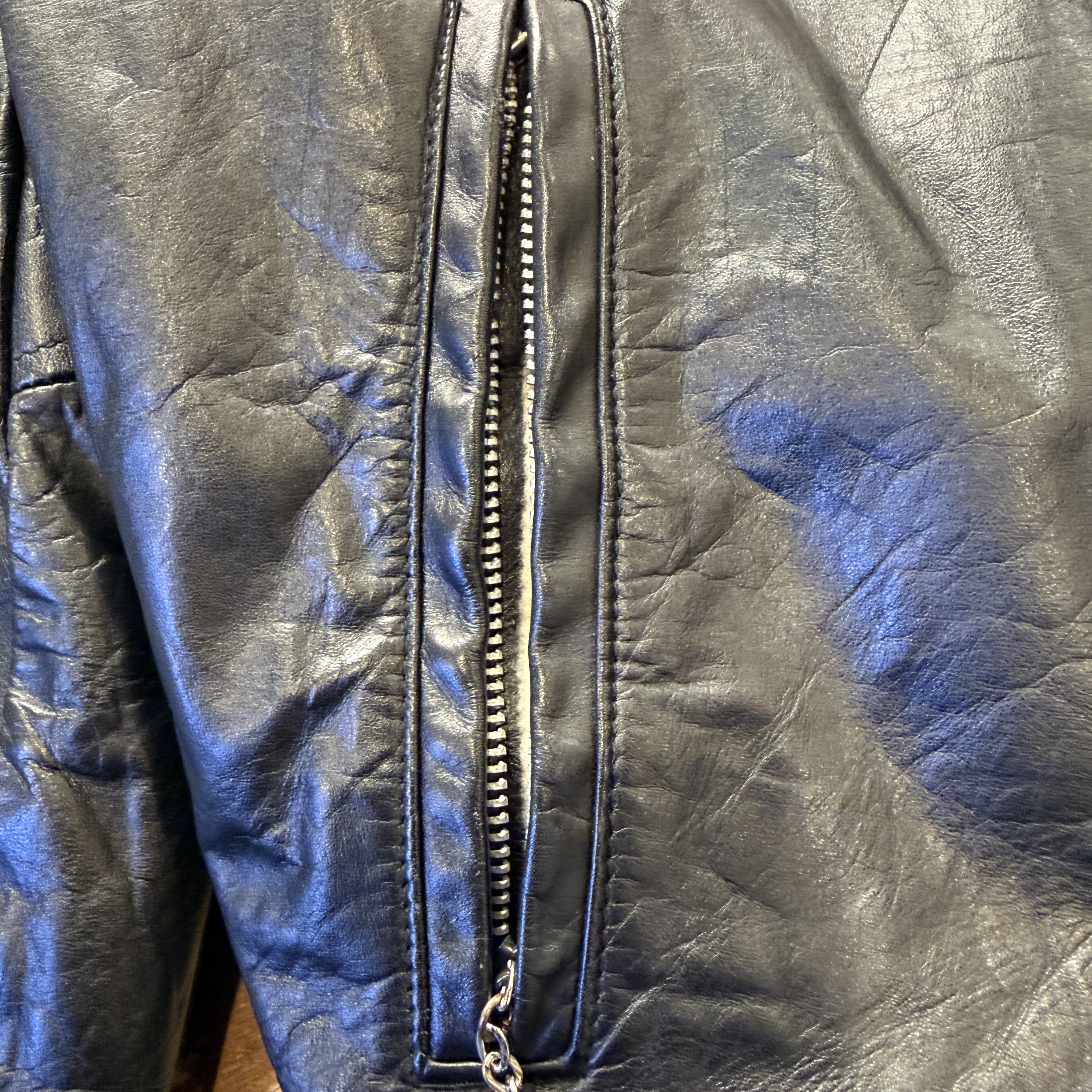 - 画像の様にレザー特有のスレやシワやスレ、左胸部分のジップ不良等の着用感ございますが、問題なく着用可能な状態です。