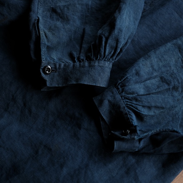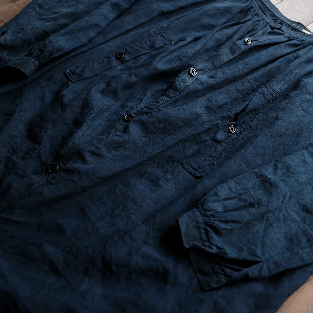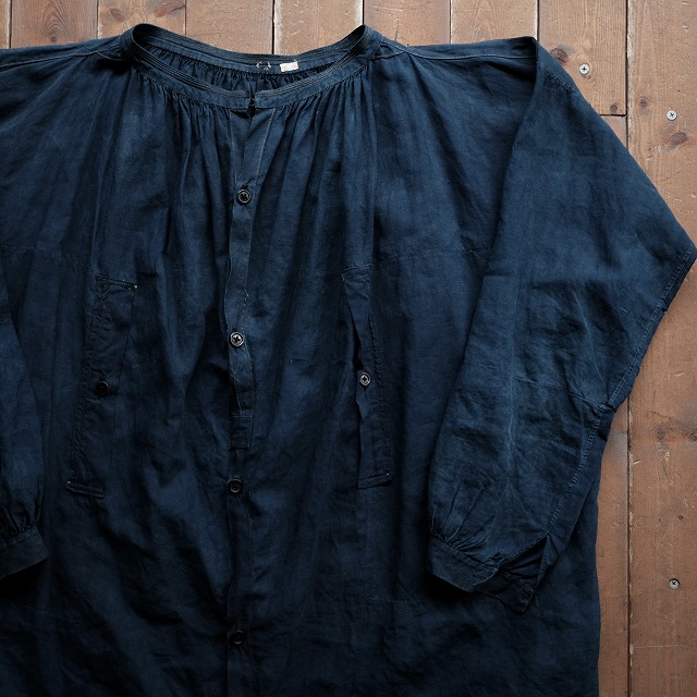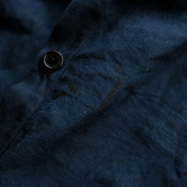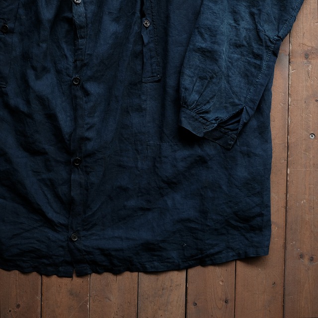 - 1800年代から1900年代迄フランスで労働着として長く使用されてきたインディゴリネンスモック。現代では再現不可能な特徴的なプルプルとしたリネン生地。インディゴの染料がエイジングにより芸術的に美しい表情を作り出します。