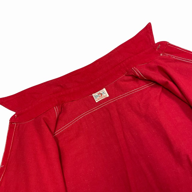 「襟ダブルステッチ、マチ付き、レッド、無地」
