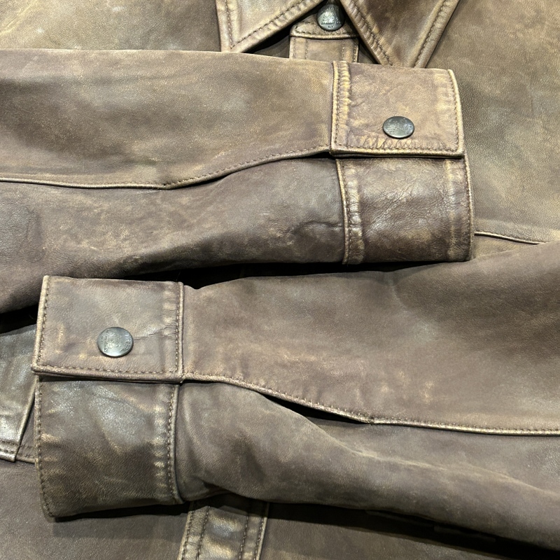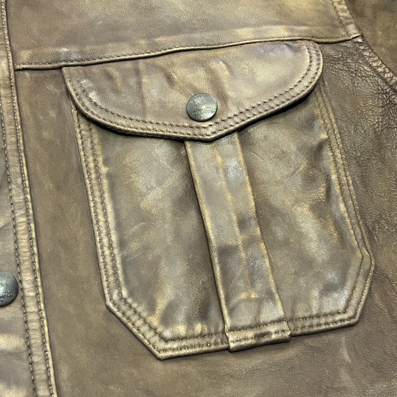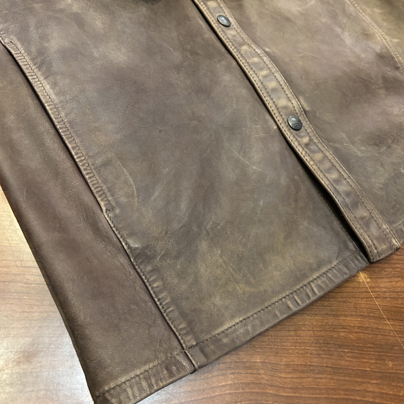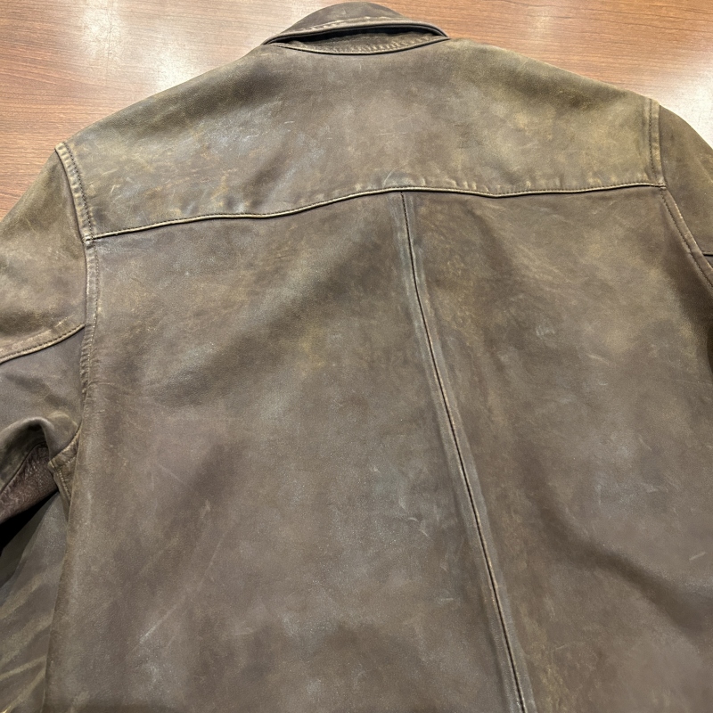- 元々ユーズド加工が施されております。レザー特有の傷やシワ等の着用感がございますが、目立つダメージ等は無く、まだまだ問題無く着用していただける状態です。