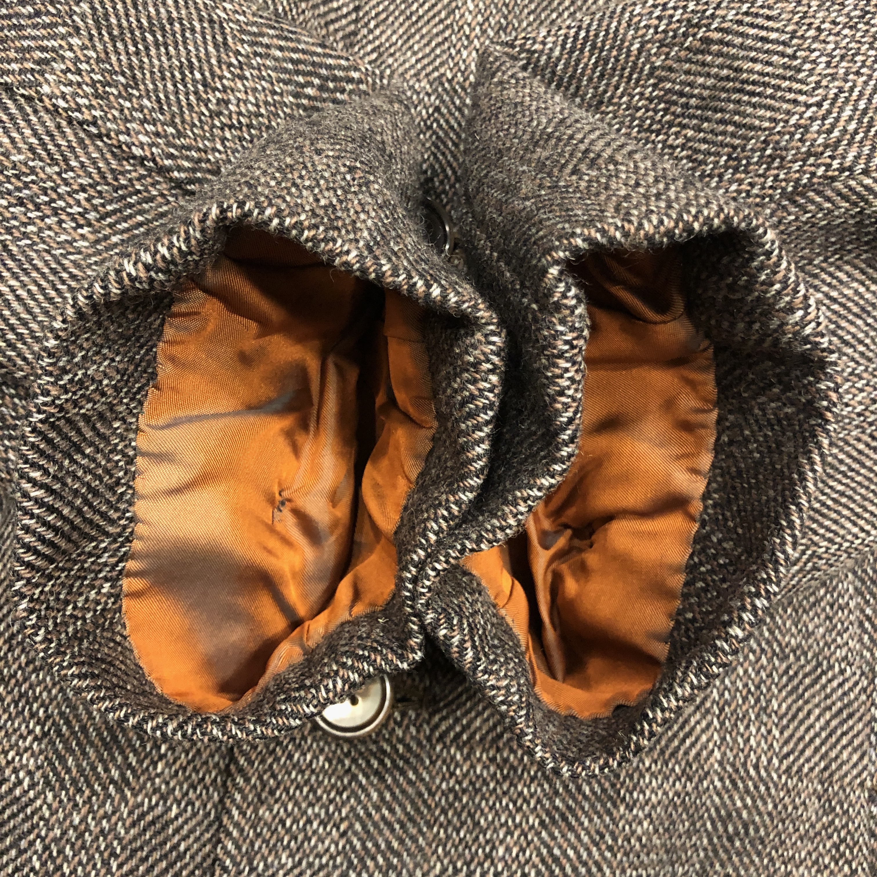 こちらはオークニー諸島で手織りされた CUSHA TWEED(クーシャ・ツイード) を使用したバルマカーンコートです。