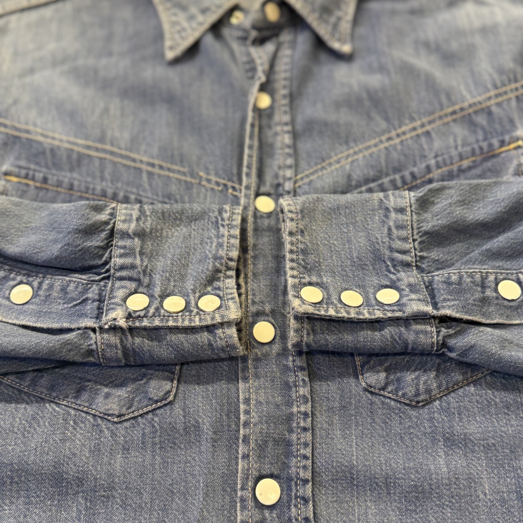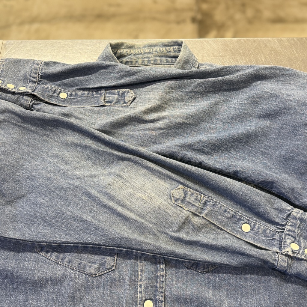 - 全体的に着用感、画像の様に袖部分にリペア、ポケット部分のスナップボタンの破損が見られます。