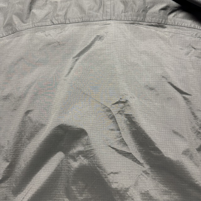 - パーツの劣化によるべたつき、劣化によるシームテープの剥がれ、ナイロン面に変色の様なシミが見られます。画像でご確認ください。その他、年代相応の着用感ございますが、ユーズド慣れされた方でしたら、まだまだ着用していただけます。