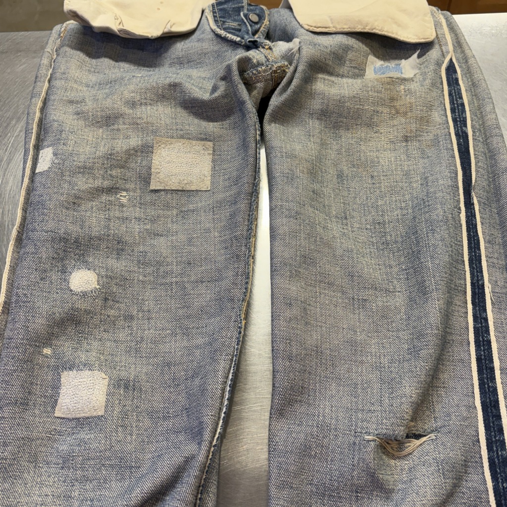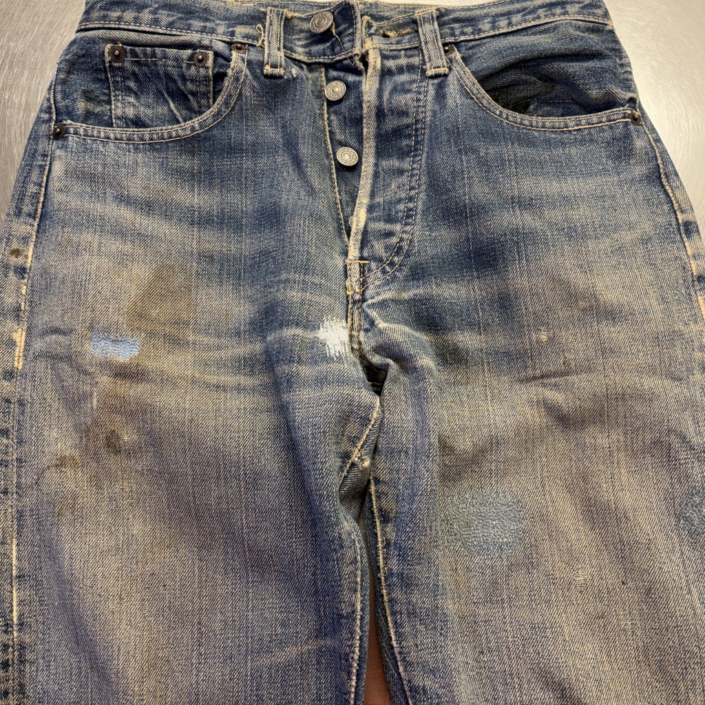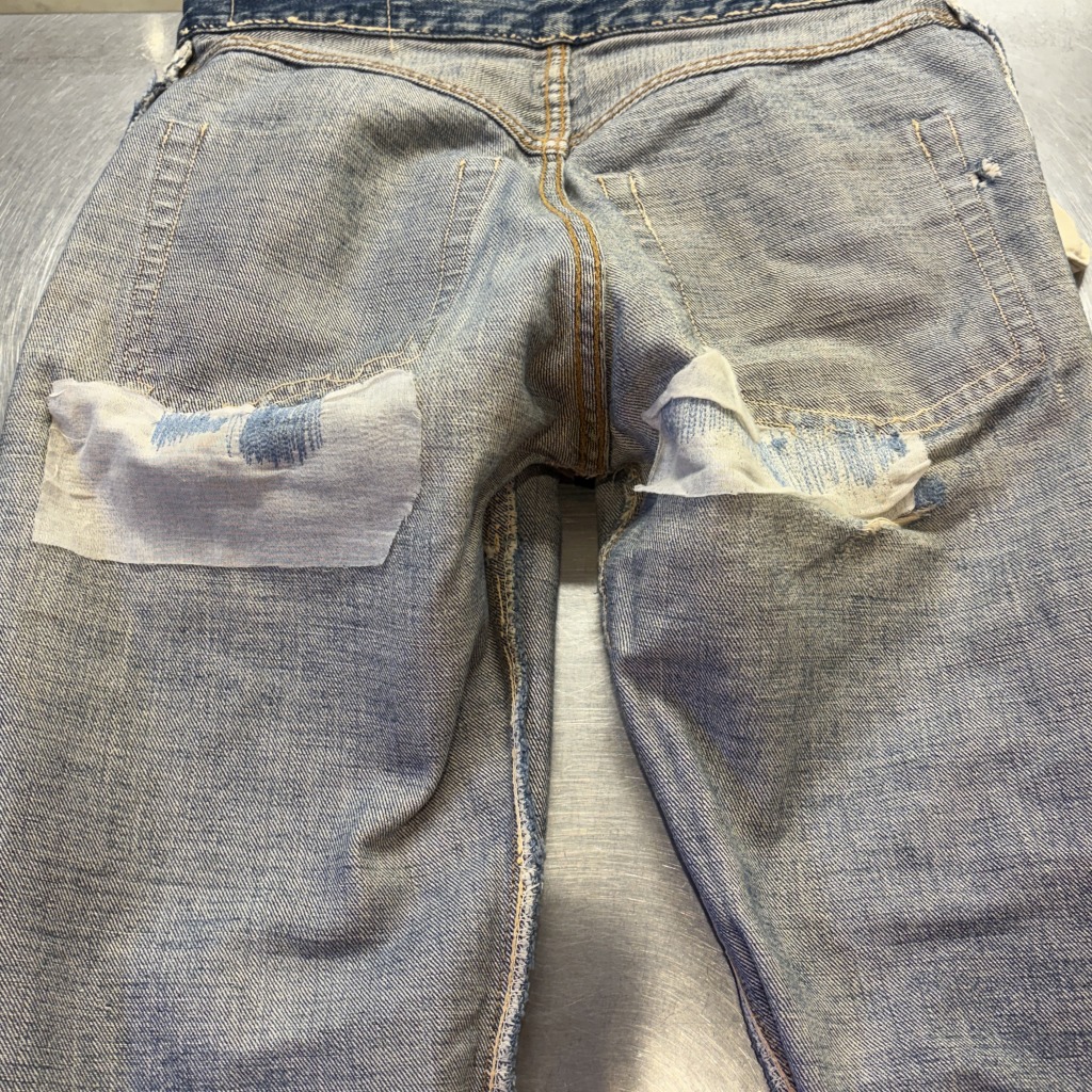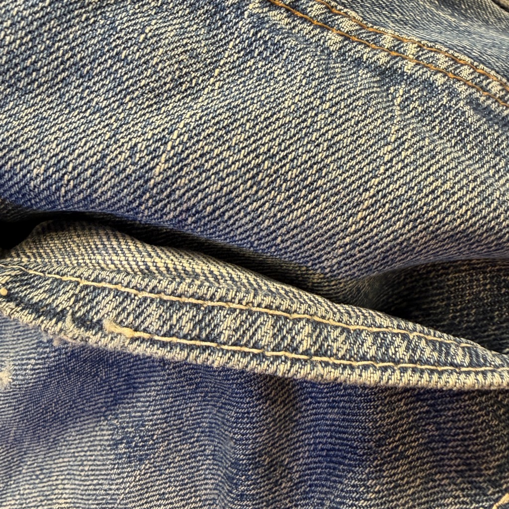- 全体的に汚れやあたり、スレ、ダメージ等があり全体的に着用感ございます。ステッチ抜けやリペアも複数個所されています。