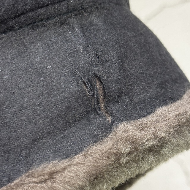 - 折り曲げた内側部分に破れが見られます。画像でご確認ください。その他、着用感はございますが、ユーズド慣れされた方でしたらまだまだ問題なく着用していただけます。