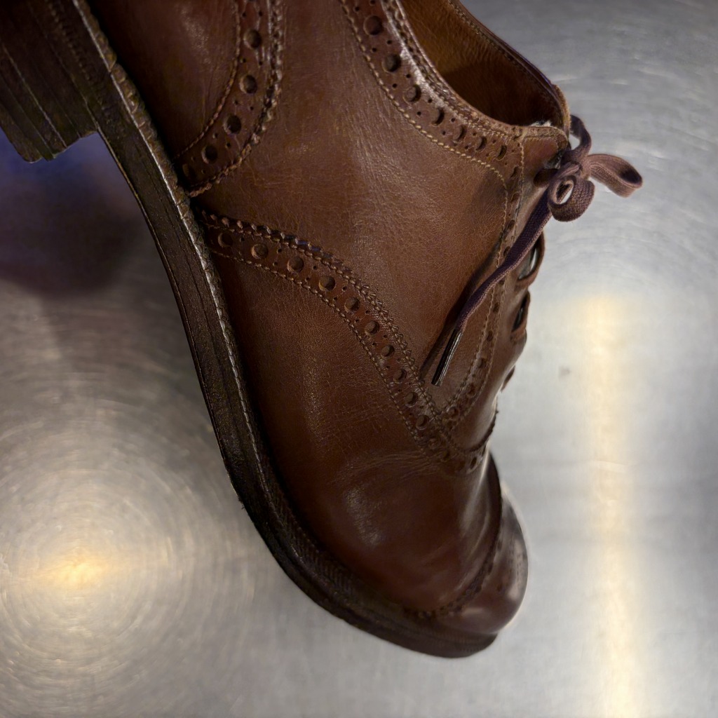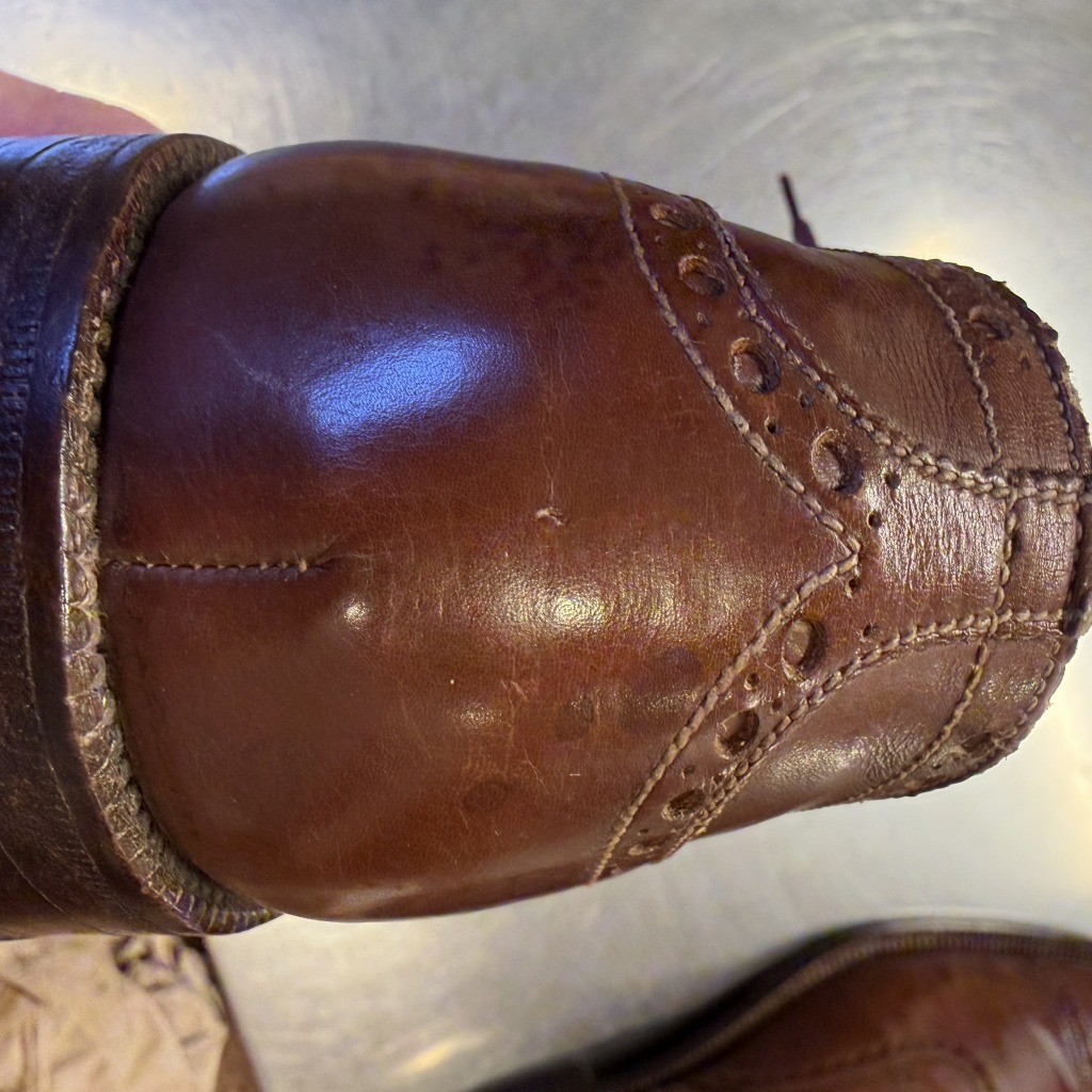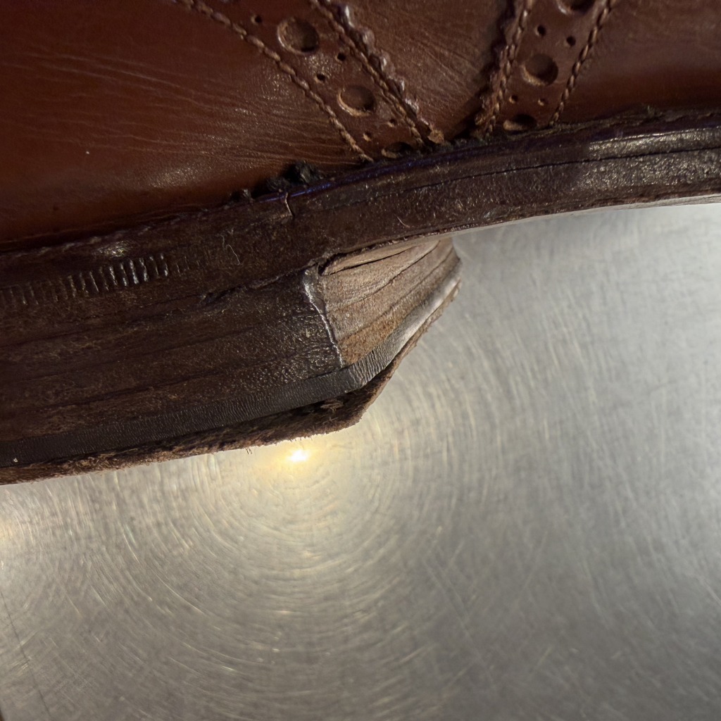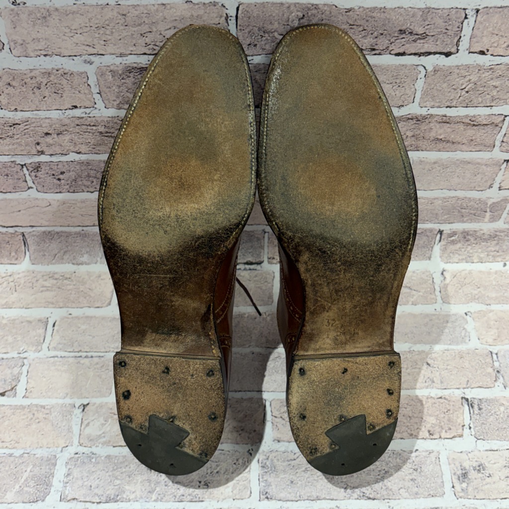 - 履きシワや、アウトソールやレザー部分等にダメージがあり全体的に着用感ございます。アウトソールのかかと部分の部品剥がれ等もございます。
