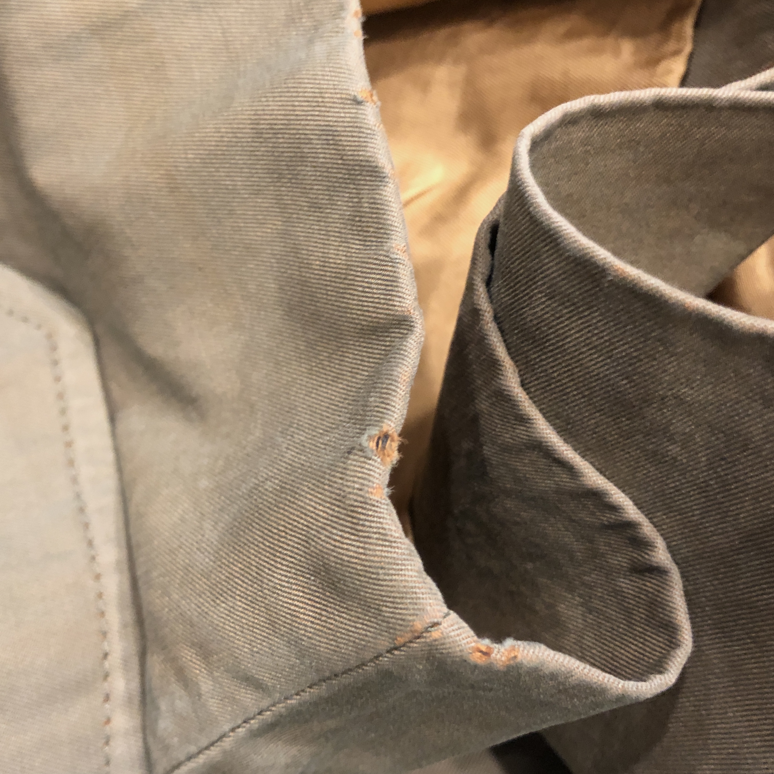 - 年代相応の着用感と画像の様なスレ、アタリ、汚れ、袖口のダメージ、ボタンのホツレ等がございますが、ヴィンテージ慣れされている方でしたら問題なくお使いいただける範囲です。