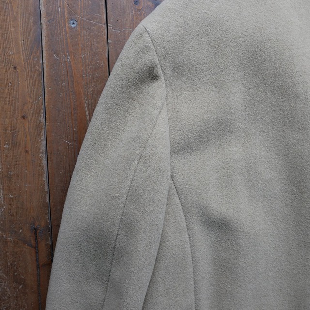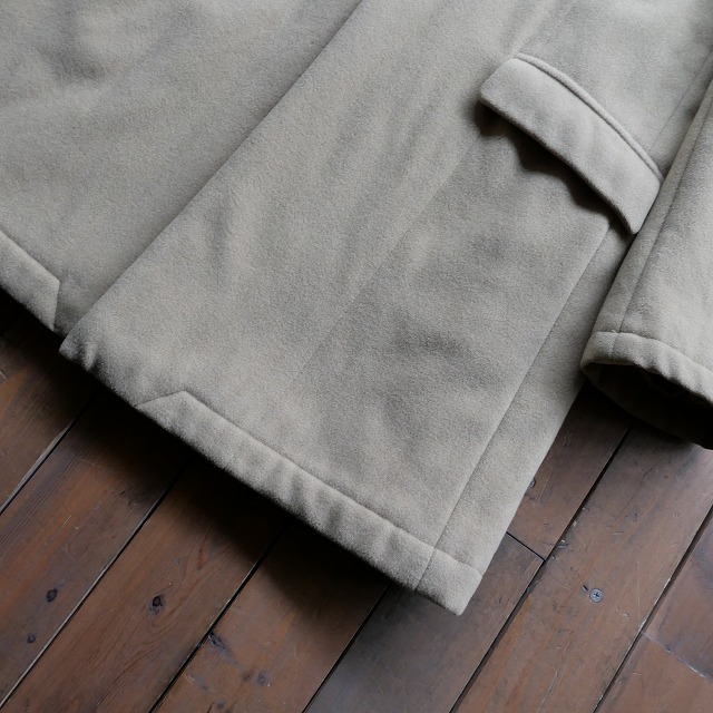 縫い合わせをサイドで合わせる事で非常に綺麗なショルダーライン、緩やかなAラインの洗練されたシルエット、ファブリックも上質で肉厚なウール生地を使用しており素材にも強いこだわりを持っている当ブランドならではの魅力が詰まった一着。