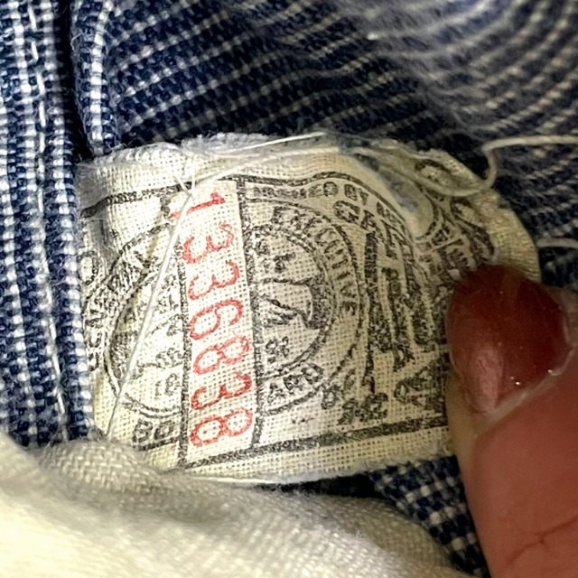 91-Jデニムカバーオールに対し生地違いの96-Jピンストライプカバーオールです。