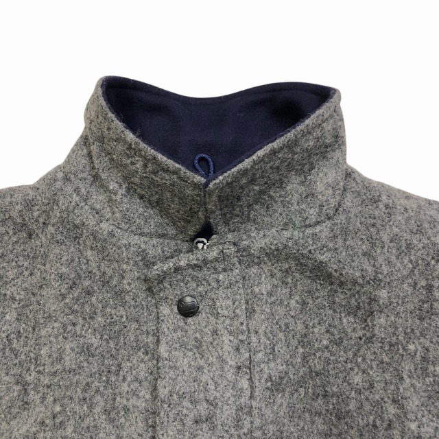 カラーはグレーで、襟と袖先裏地がネイビーが入ります。