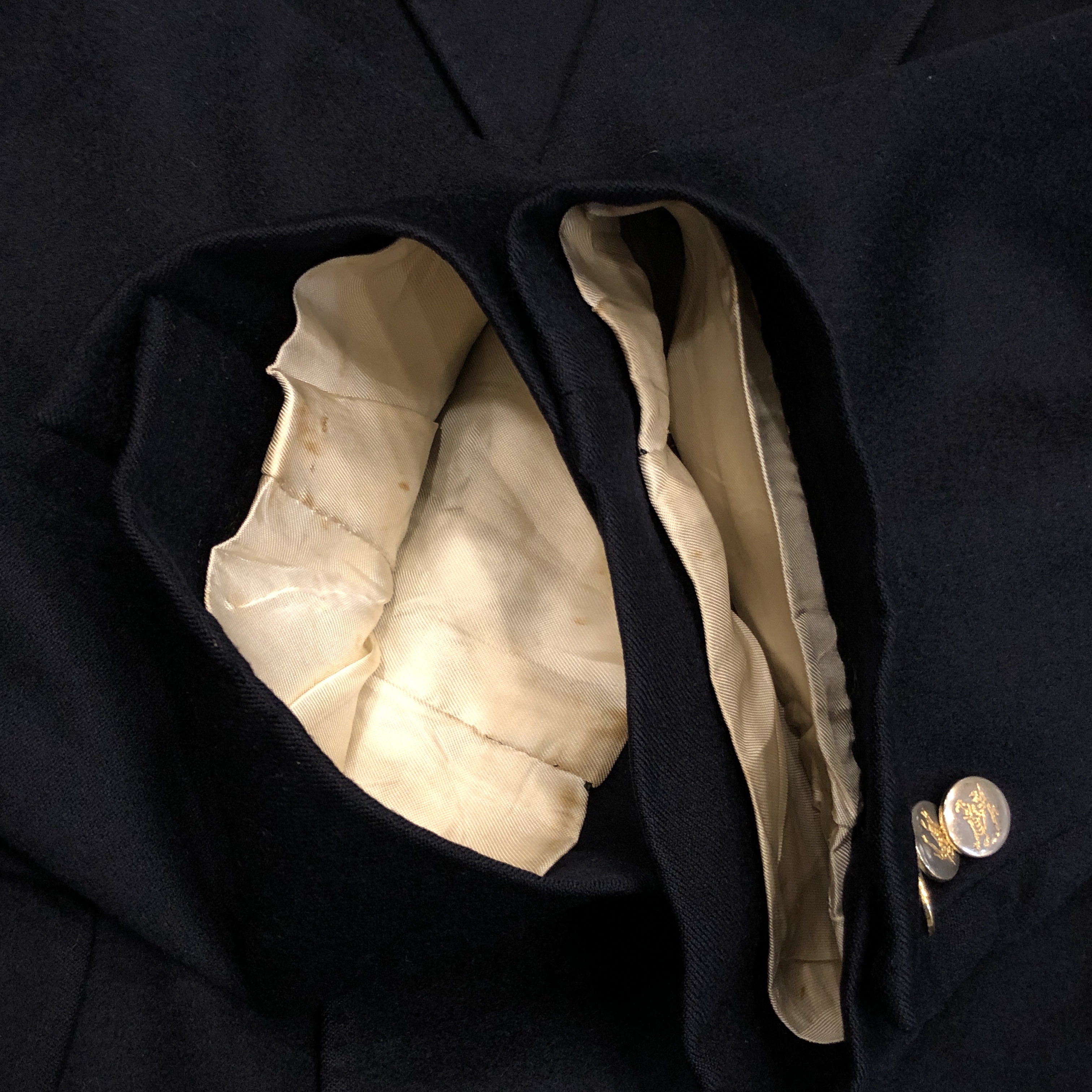 - 年代相応の着用感、両袖口内側に画像の様な汚れがございますが、ヴィンテージ慣れされた方でしたら問題なく着用していただける範囲です。ボタンが一つ変えられています。