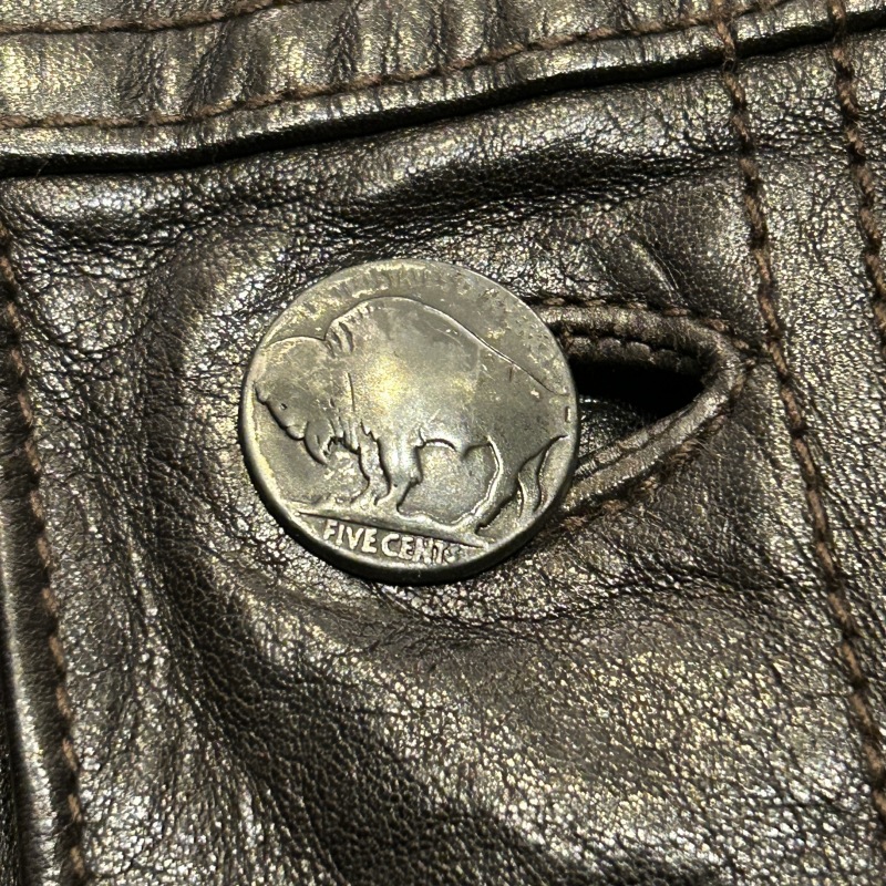 - レザー特有の傷やシワ等の着用感がございますが、目立つ汚れやダメージ等は無く、まだまだ問題無く着用していただける状態です。
