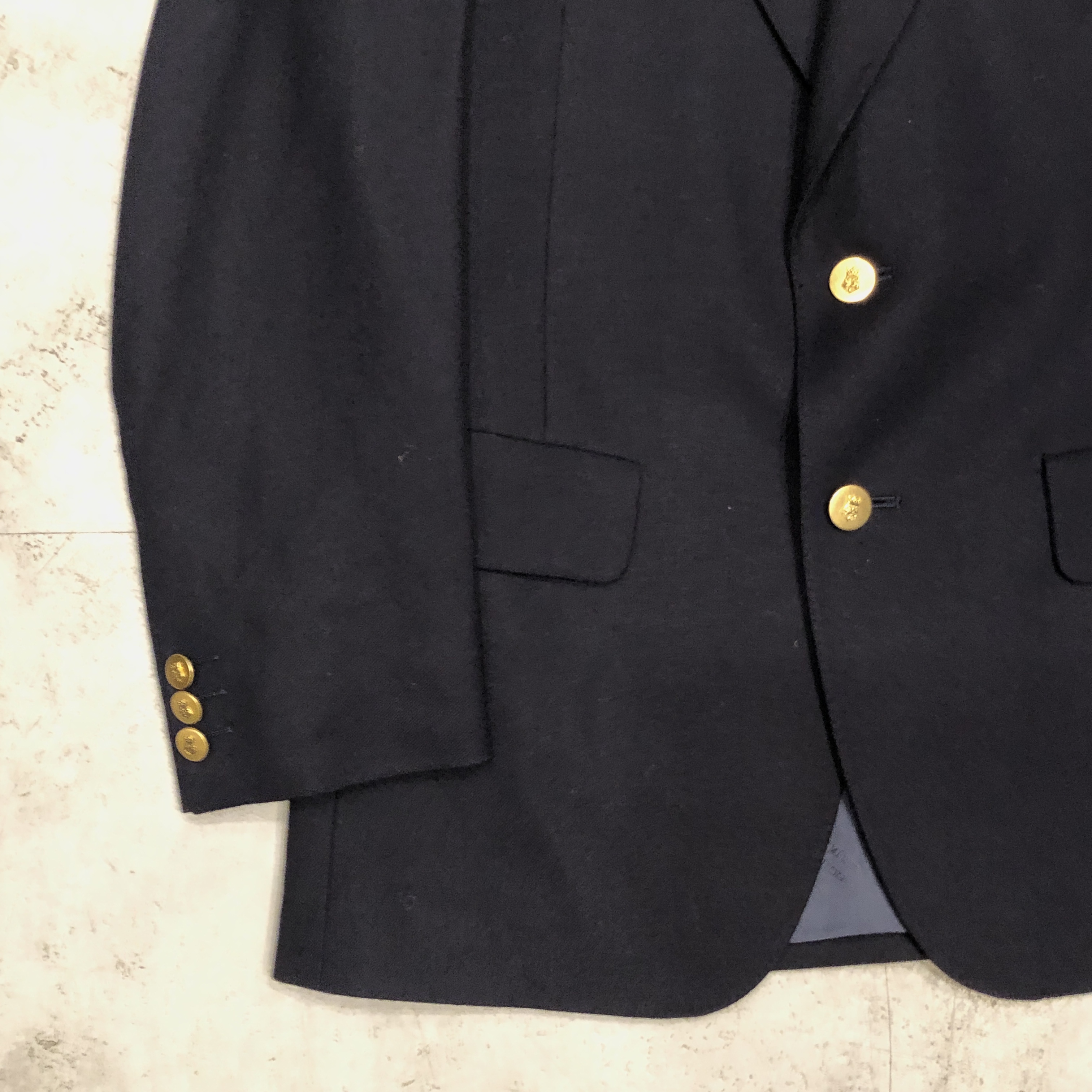 ゴールドボタンが醸し出す格式と、ダークネイビーの奥深いトーンが絶妙に響き合い、タイドアップはもちろん、デニムとのカジュアルな合わせにも映えます。