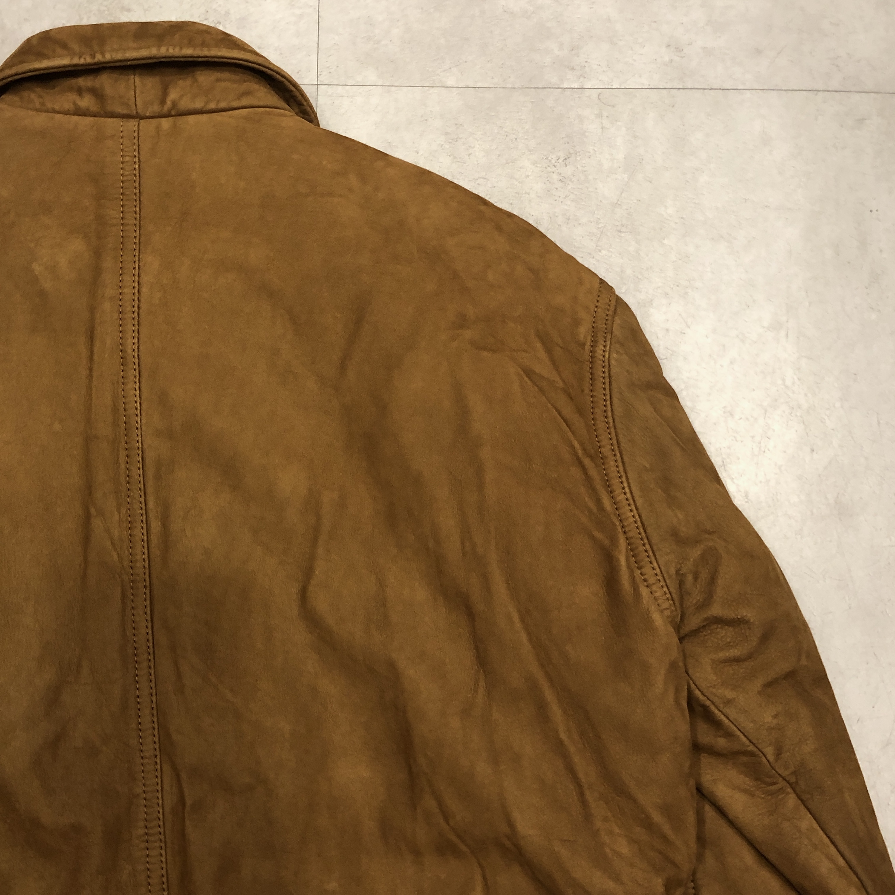 しっとりとした起毛面の質感が素晴らしく、着込むほどに色が濃く沈み、皺が刻まれ、唯一無二の表情へと変化していきます。新品では絶対に出せないこの “育ち具合” がたまりません。
